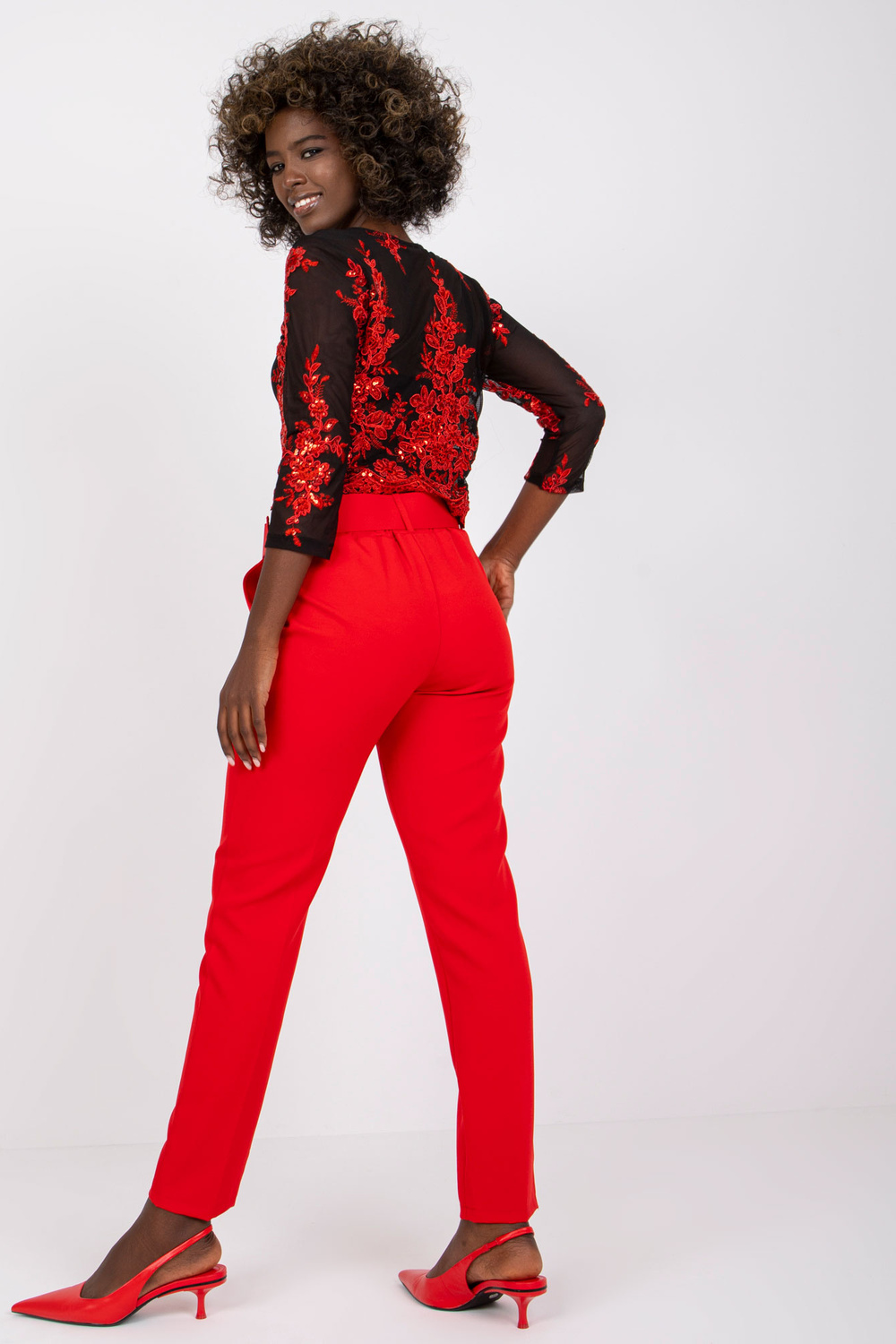 Elegantiškos raudonos kelnės su Giulia diržu.