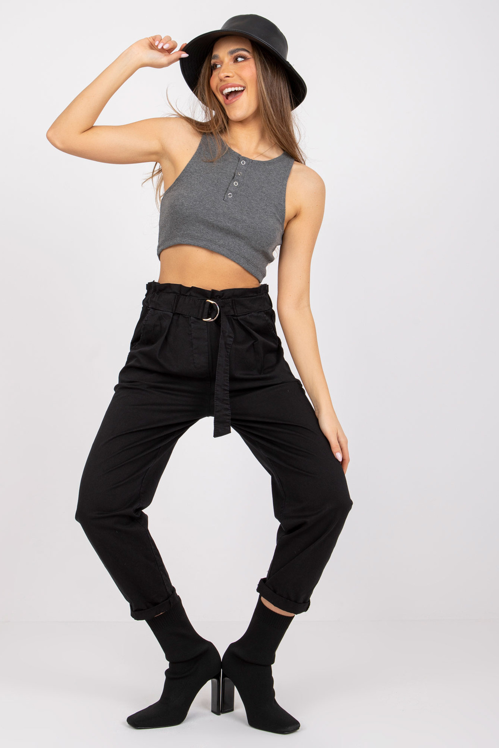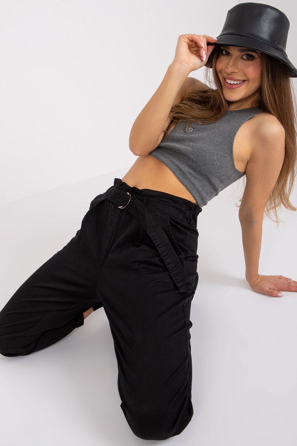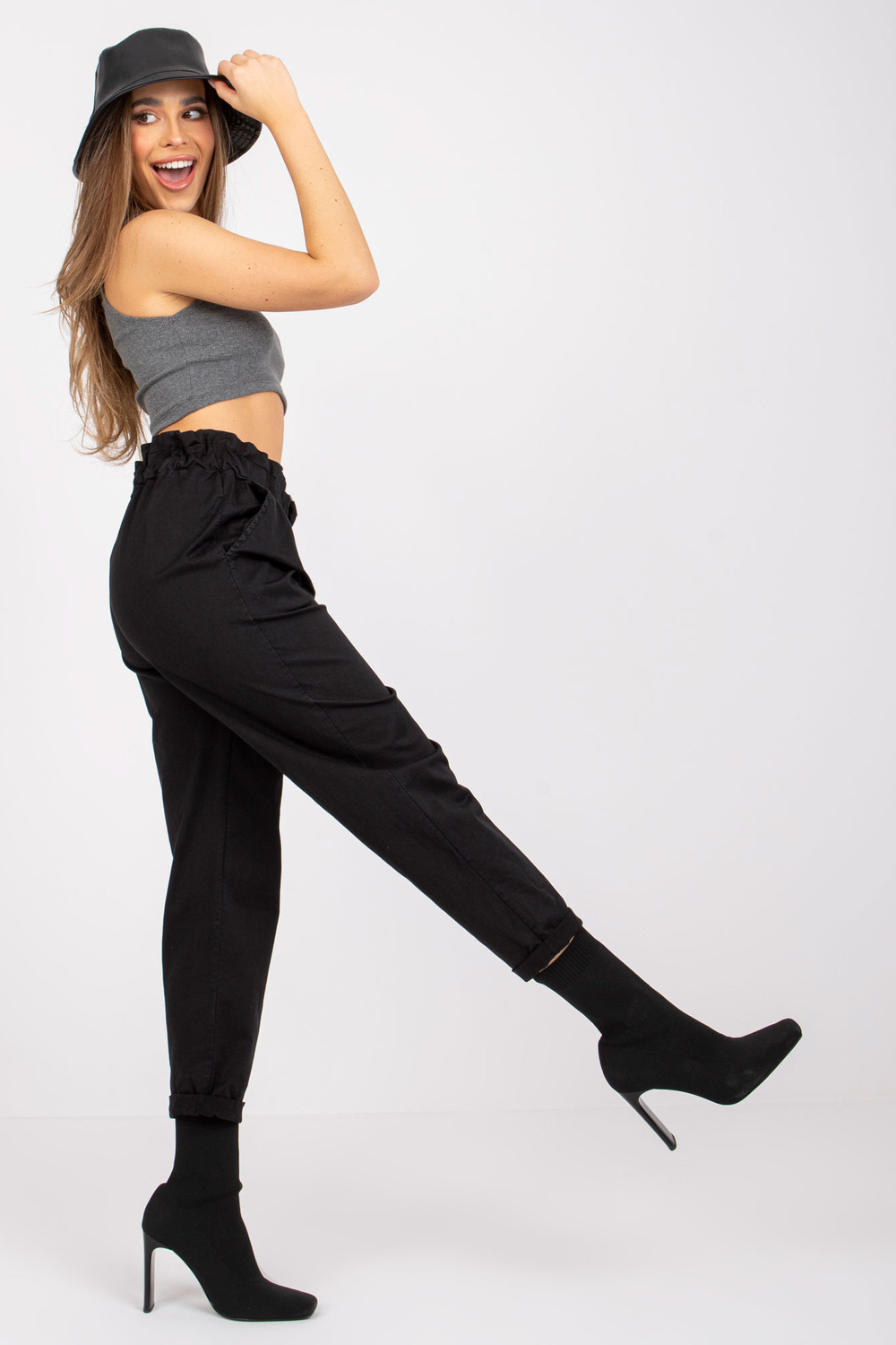 priedai: elastingas juosmuo, kišenės, prisiūtas dirželis