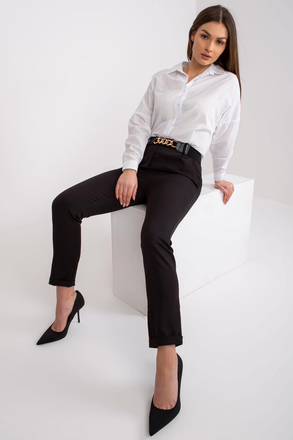 Elegantiškos juodos kelnės su Sevilijos diržu.