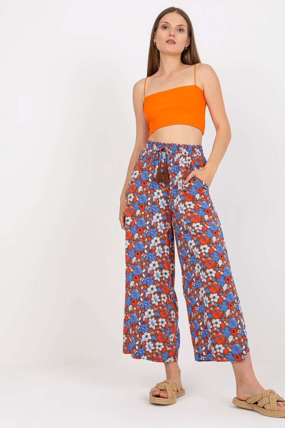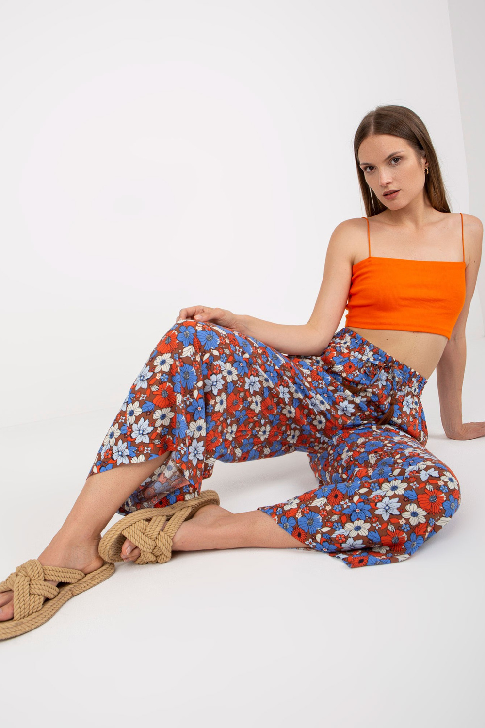 Rudos, erdvios kelnės iš SUBLEVEL gėlėto audinio