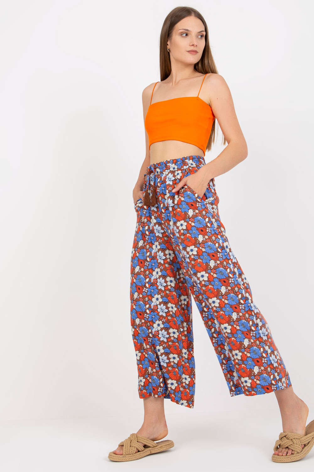 Rudos erdvios kelnės iš gėlėto audinio SUBLEVEL. priedai: kišenės, kaklaraiščiai, elastingas juosmuo medžiagos sudėtis: 100% viskozė skalbimo būdas: skalbimas mašinoje 30°C