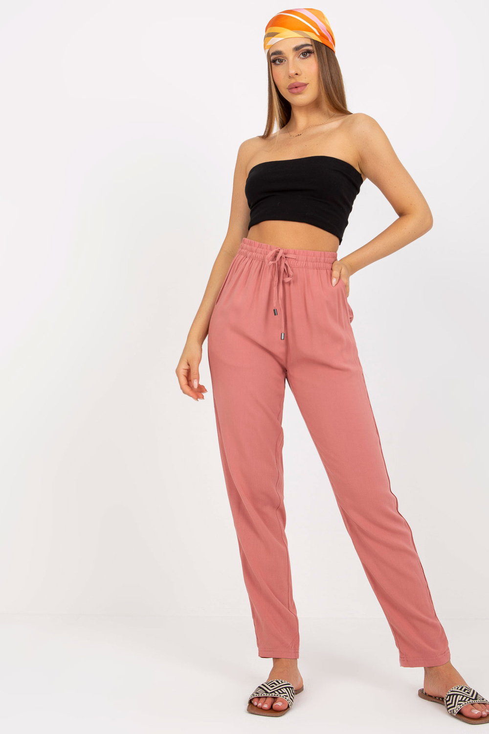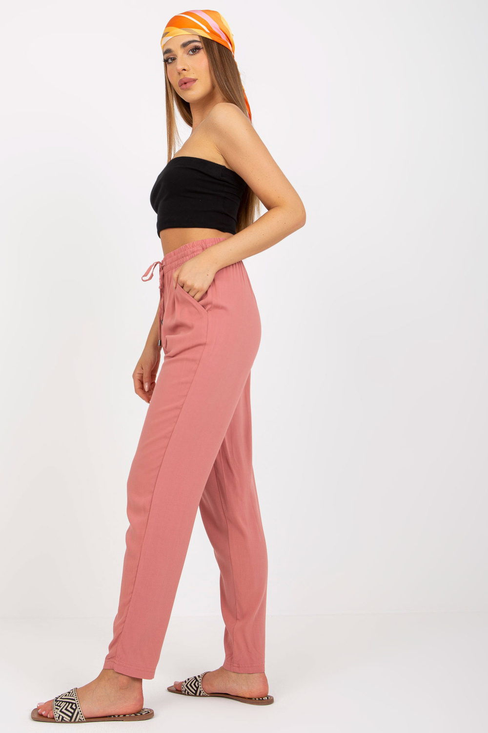 Tamsiai rožinės spalvos audinio vasarinės kelnės iš viskozės SUBLEVEL < /strong> .