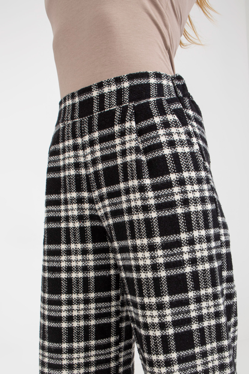 Schwarze weite Hose aus karrier-stoff.