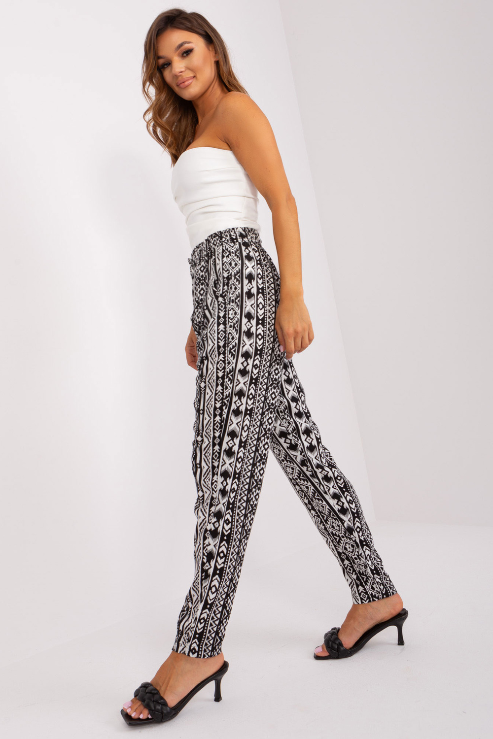 Kelnių matmenys S dydis matuojamas ant plokščio: juosmens plotis - 36 cm, juosmens aukštis - 29 cm, bendras ilgis - 98 cm.