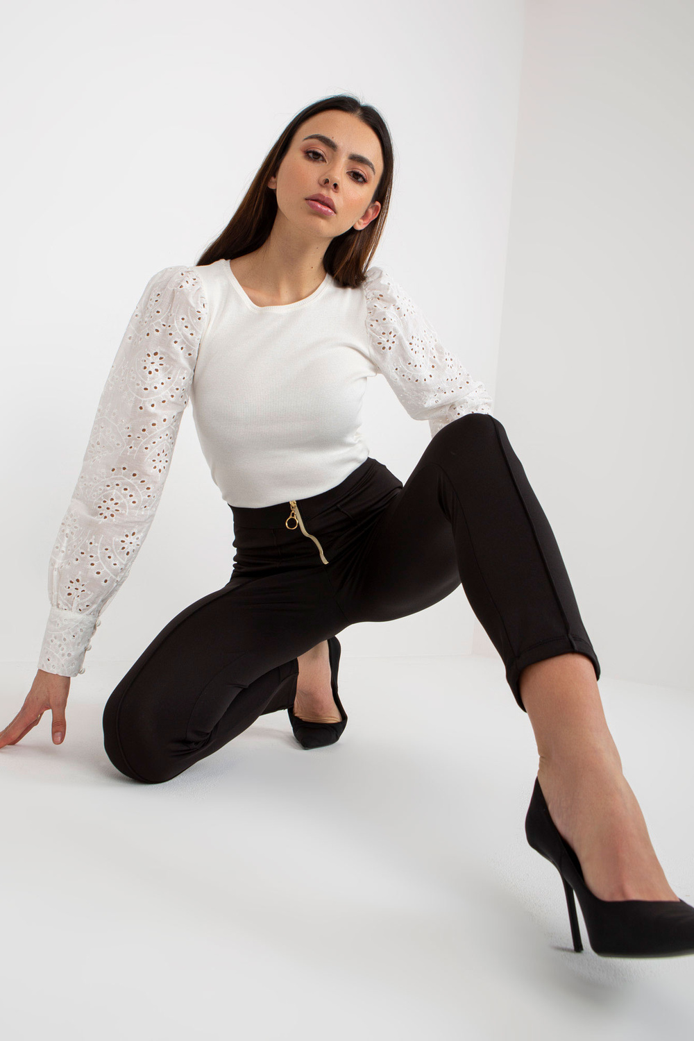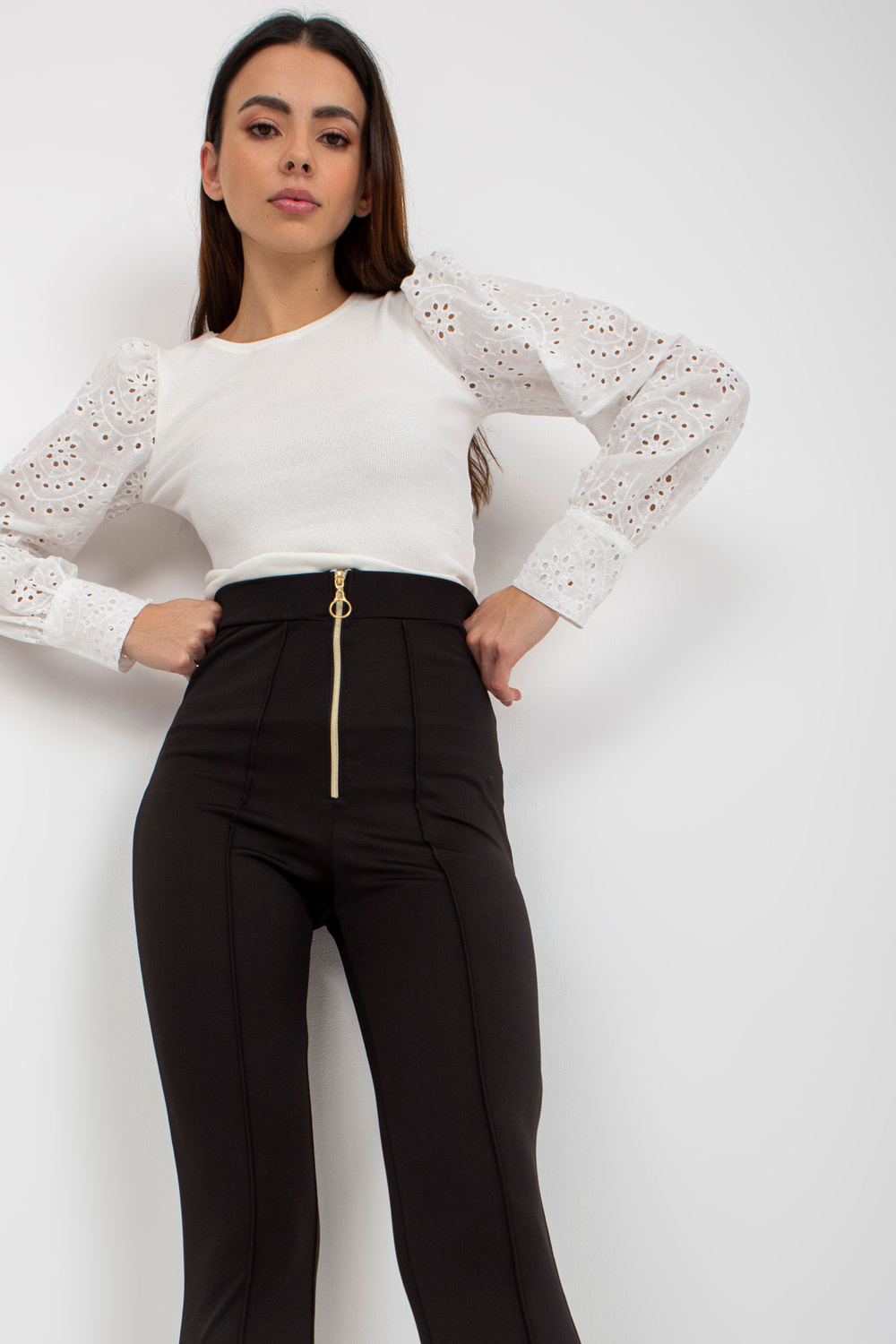 Juodi elegantiški antblauzdžiai su užtrauktuku priekyje OCH BELLA. prekės kodas: TW-SP-BL-1008.94 dominuojantis raštas: glotnus Stilius: laisvalaikis: laisvalaikis, pasimatymui, darbui, vakarėliui Modelis dėvi S dydį. Modelio išmatavimai: ūgis 175 cm, krūtinė 84 cm ,