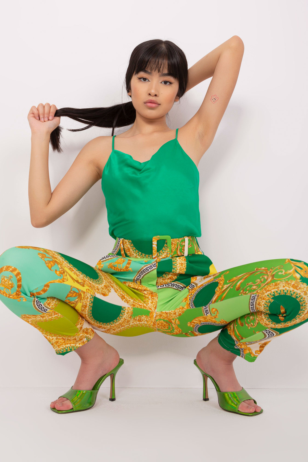 Kelnių matmenys S dydis matuojamas ant plokščio: juosmens plotis - 31 cm, juosmens aukštis - 28 cm, bendras ilgis - 96 cm.