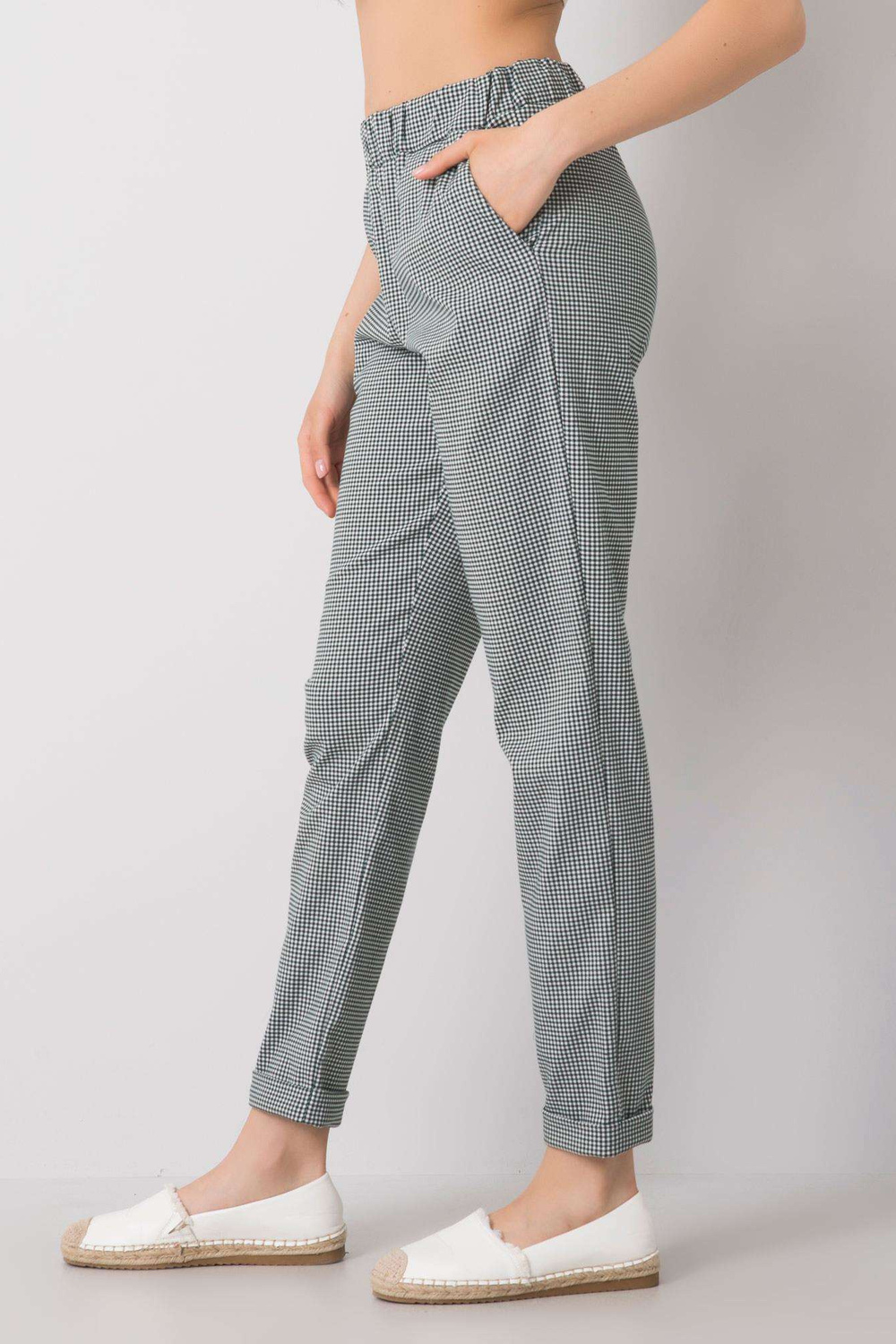 Juodos ir žalios kelnės su languotais Noreen. medžiagasudėtis: 65% poliesteris, 30% medvilnė, 5% elastanas skalbimo būdas: skalbimas mašinoje 30°C Modelis dėvi 36 dydį. Modelio išmatavimai: aukštis 173 cm, krūtinė 81 cm, juosmuo 60 cm, klubai 90 cm. Matmenysso