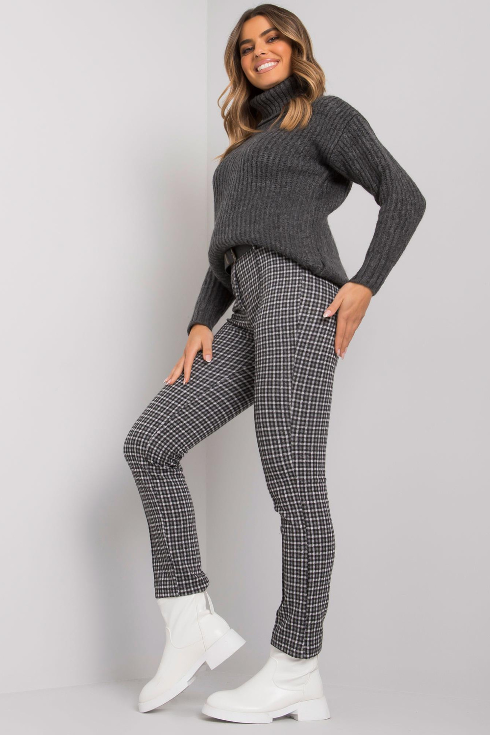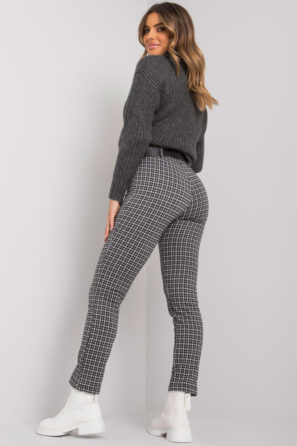 Juodos pilkos kelnės su Lantana diržu .