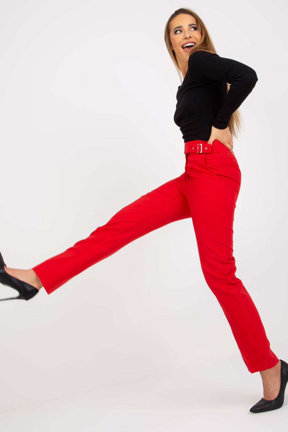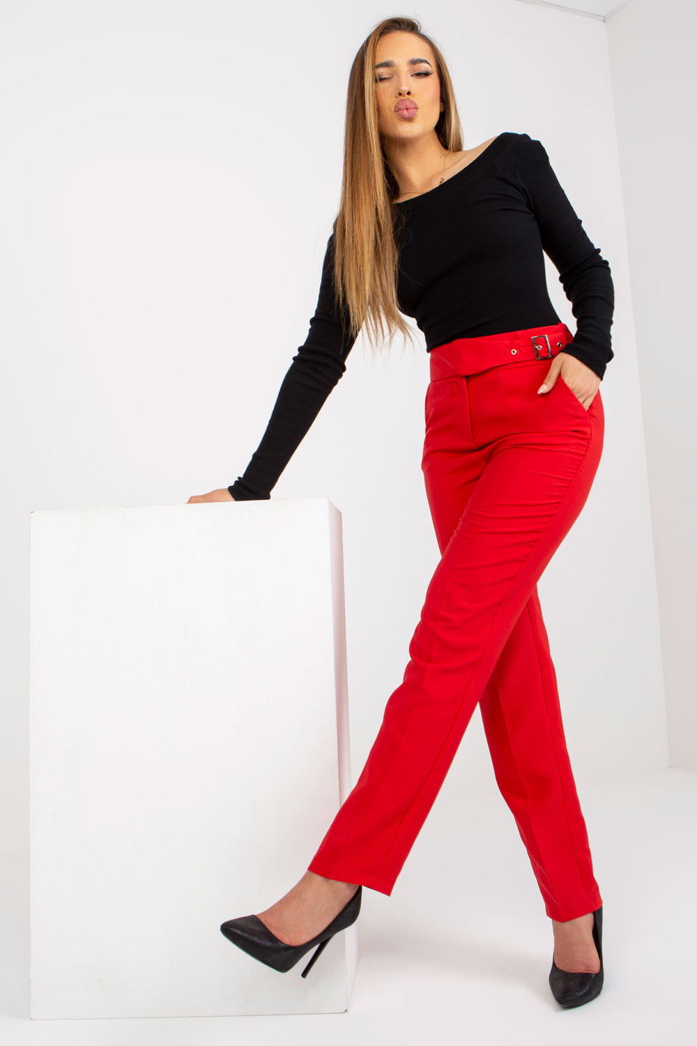 Raudonos elegantiško audinio kelnės su kišenėmis