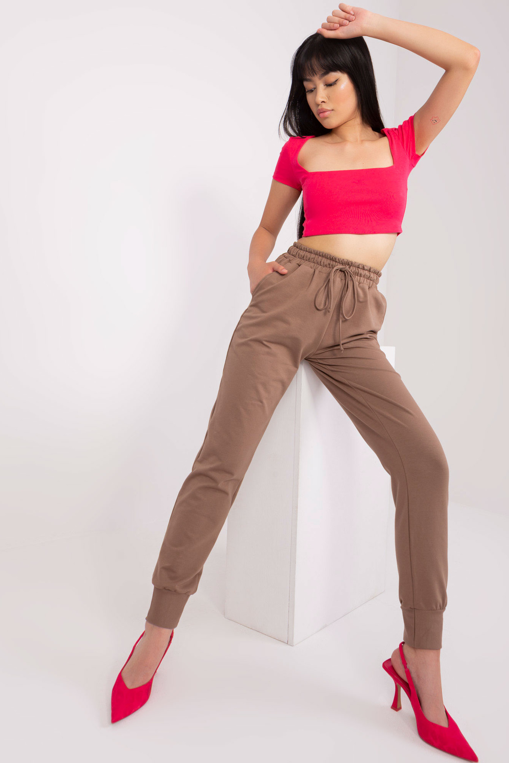 Modelis dėvi S/M dydį. Modelio išmatavimai: ūgis 167 cm, krūtinė 73 cm, juosmuo 64 cm, klubai 91 cm.