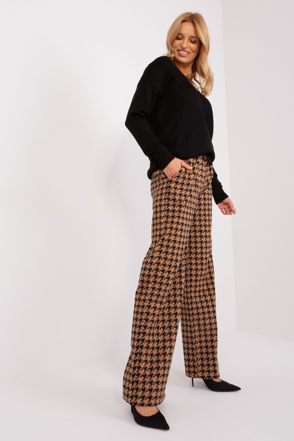 Juodos ir kupranugarių skaliko dantų megztos kelnės .