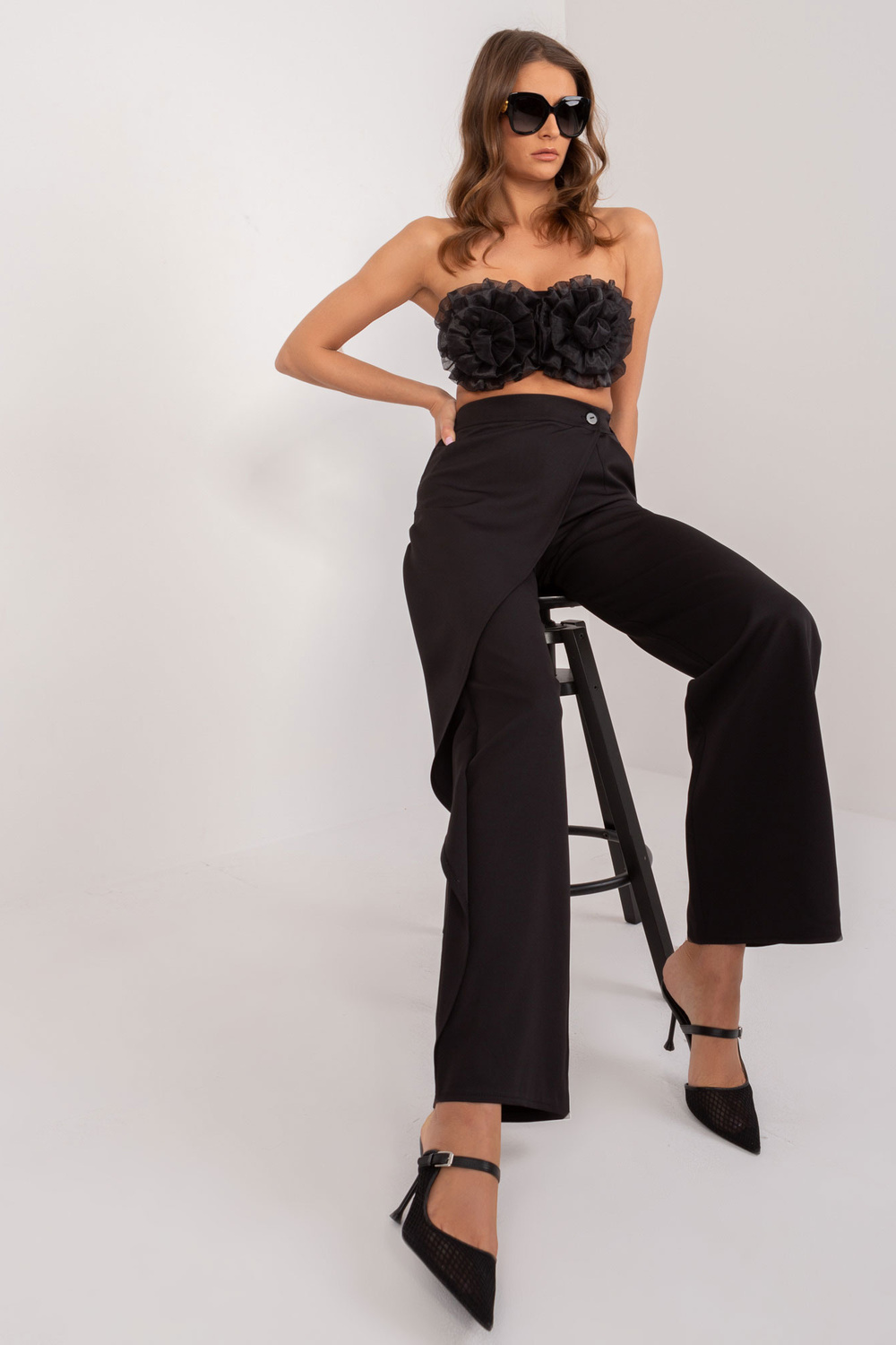 36 dydžio kelnių matmenys išmatuoti plokščiai: juosmens plotis - 35 cm, juosmens aukštis - 28 cm, bendras ilgis - 107 cm.