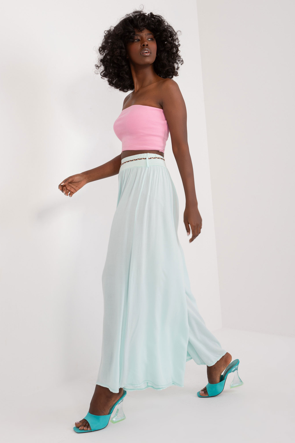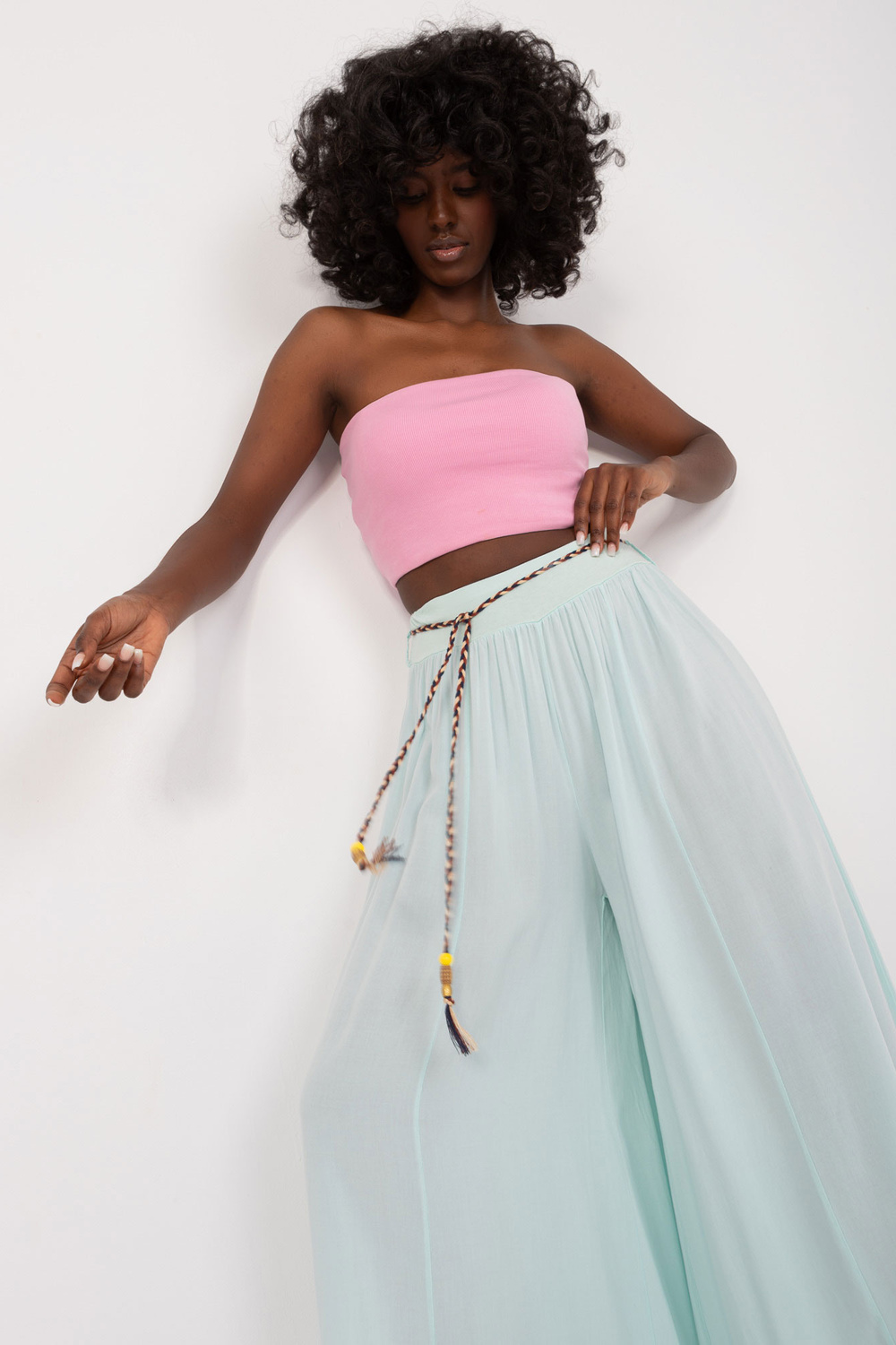 Modelis dėvi S dydį. Modelio išmatavimai: ūgis 168 cm, krūtinė 82 cm, juosmuo 62 cm, klubai 93 cm
