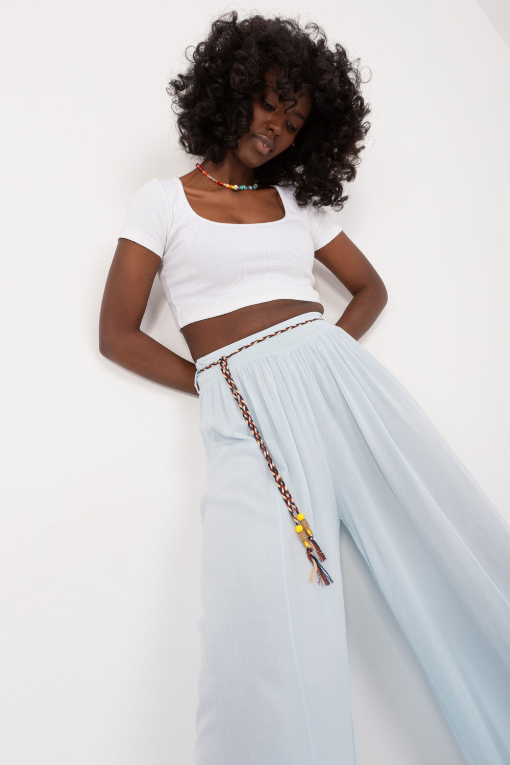Modelis dėvi S dydį. Modelio išmatavimai: ūgis 168 cm, krūtinė 82 cm, juosmuo 62 cm, klubai 93 cm