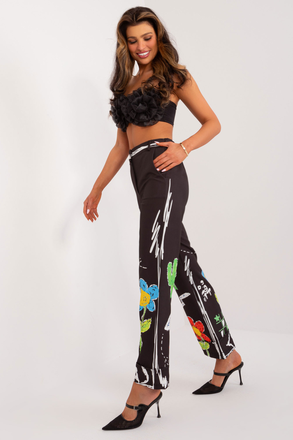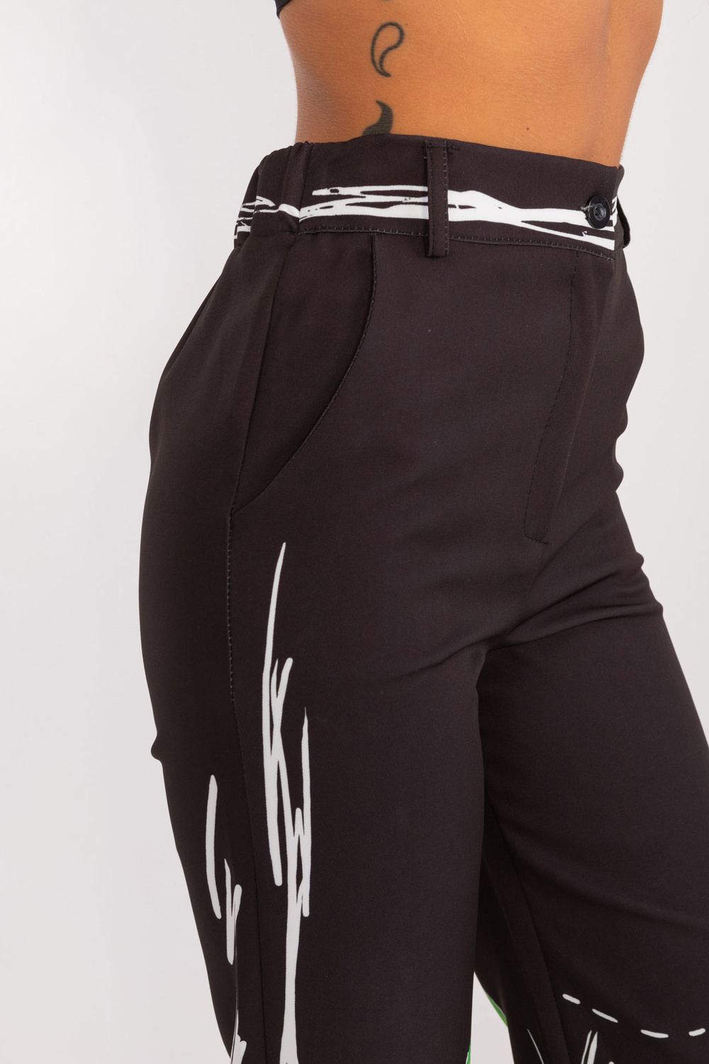 Vieno dydžio kelnių matmenys išmatuoti plokščiai: juosmens plotis - 36 cm, juosmens aukštis - 32 cm, bendras ilgis - 102 cm