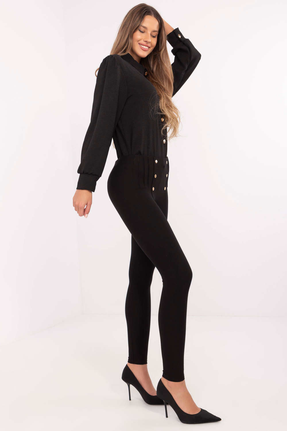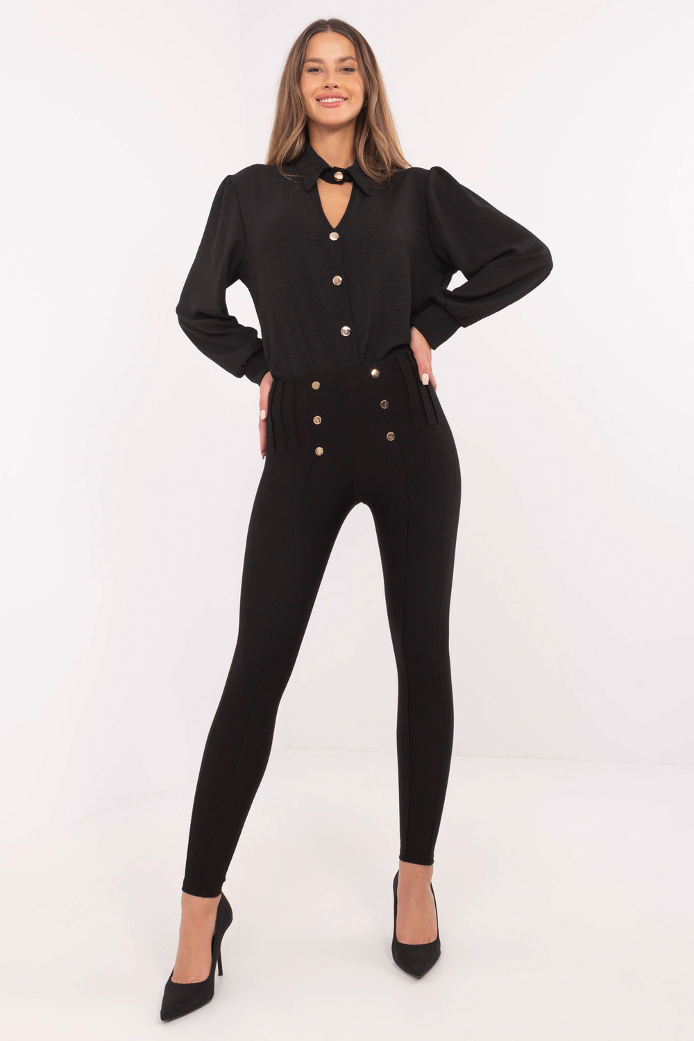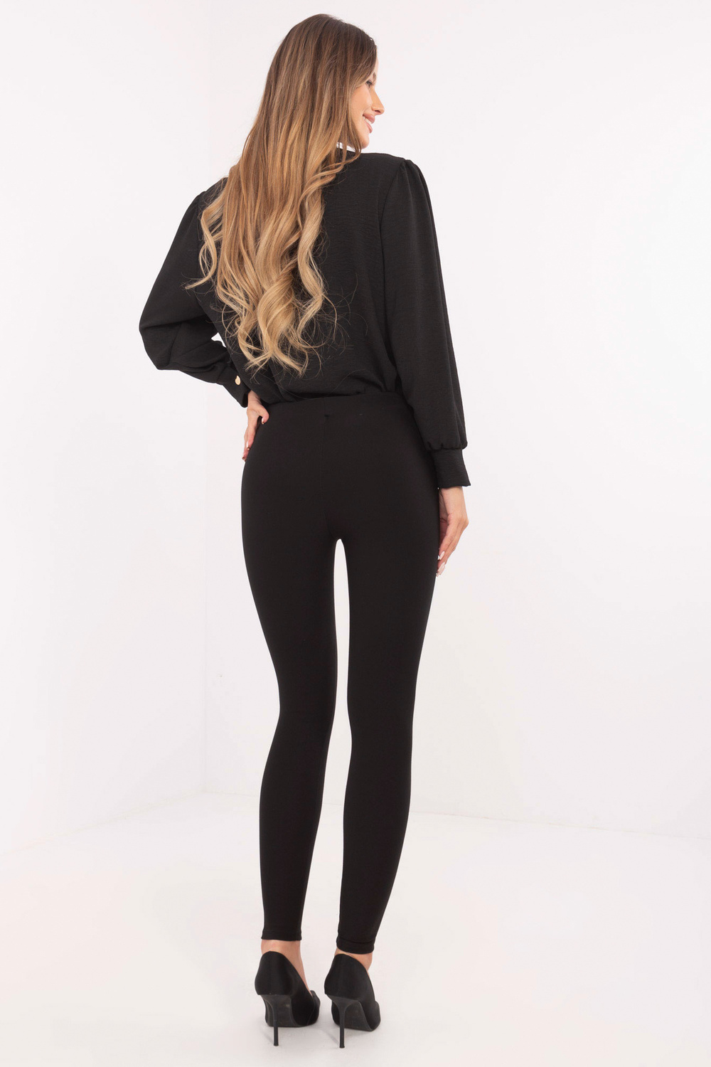 Blauzdinių matmenys S dydis matuojamas ant plokščio: juosmens plotis - 32 cm, juosmens aukštis - 23 cm, bendras ilgis - 91 cm.
