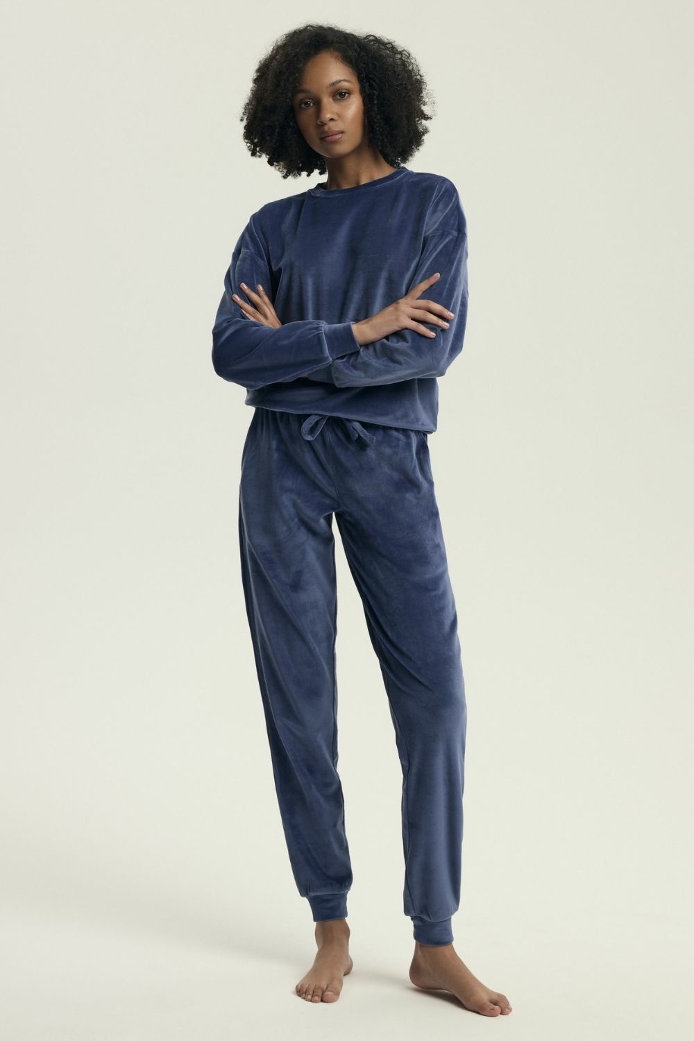 Comfortable tracksuit set with a loose, comfortable cut, perfect for everyday wear as well as homewear. The long-sleeved sweatshirt finished with a ribbed cuff ensures freedom of movement and a sporty look. Long pants with slip pockets, a wide elastic waistband, and drawstrings at the waist guarantee a perfect fit and comfort. The cuffs at the bottom of the legs give the whole a modern, casual character. An ideal set for relaxation, walks, or casual everyday styling.