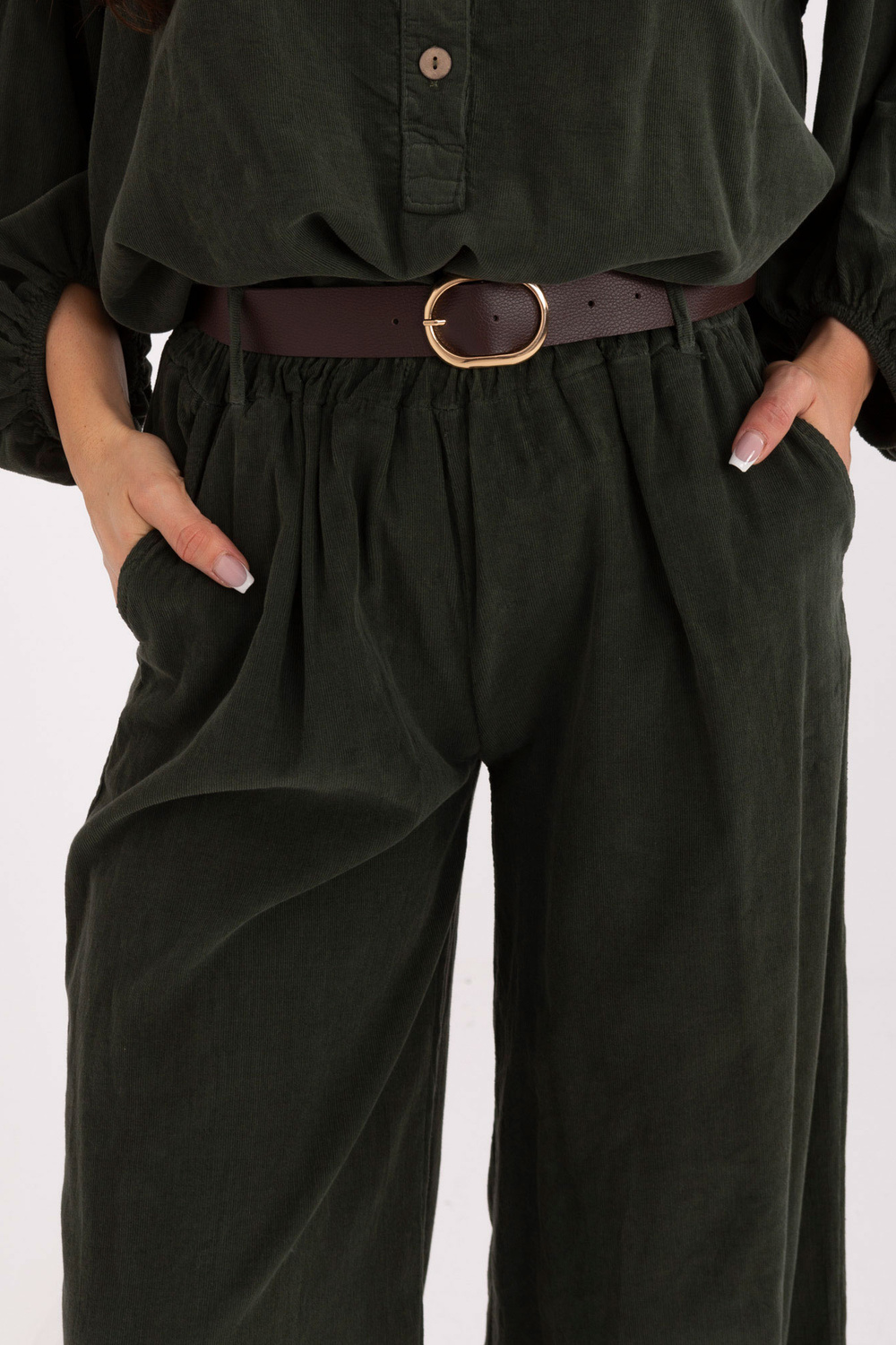Vieno dydžio kelnių išmatavimai: juosmens plotis - 31 cm (išlygintų), juosmens plotis - 53 cm (ištemptų), klubų plotis - 58 cm, kelnių ilgis - 108 cm.