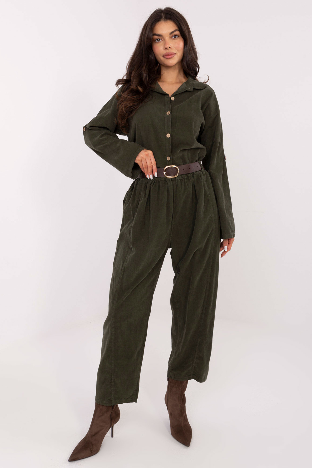 Vieno dydžio kelnių išmatavimai, matuoti ištiestus: juosmens plotis – 36 cm (ištiesta), juosmens plotis – 60 cm (ištempiant), klubų plotis – 61 cm, liemens aukštis – 35 cm, bendras ilgis – 93 cm.