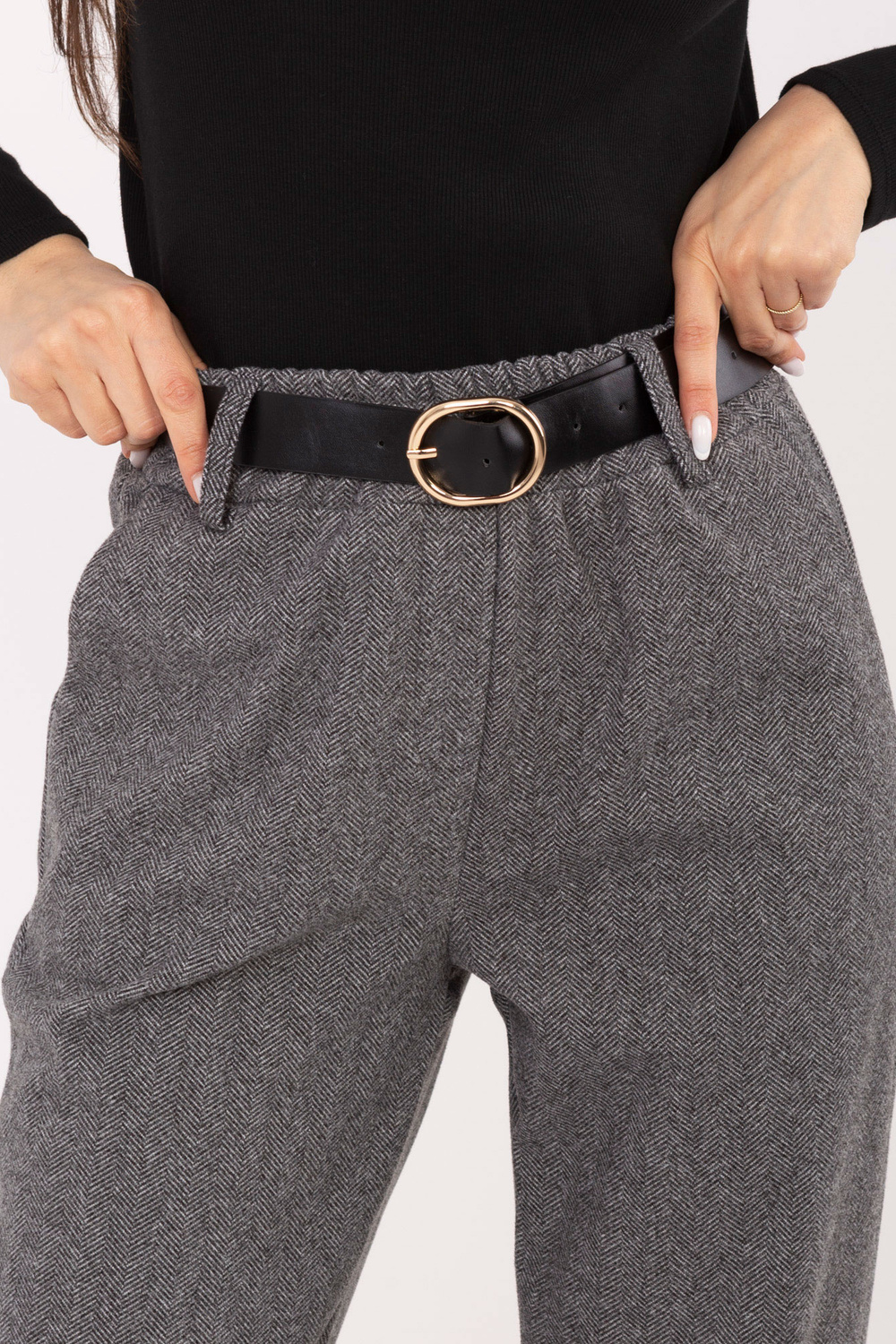 Vieno dydžio kelnės matmenys: juosmens plotis - 32 cm (išlygintas), juosmens plotis - 48 cm (ištemptas), liemens aukštis - 31 cm, klubų plotis - 49 cm, bendras ilgis - 95 cm.