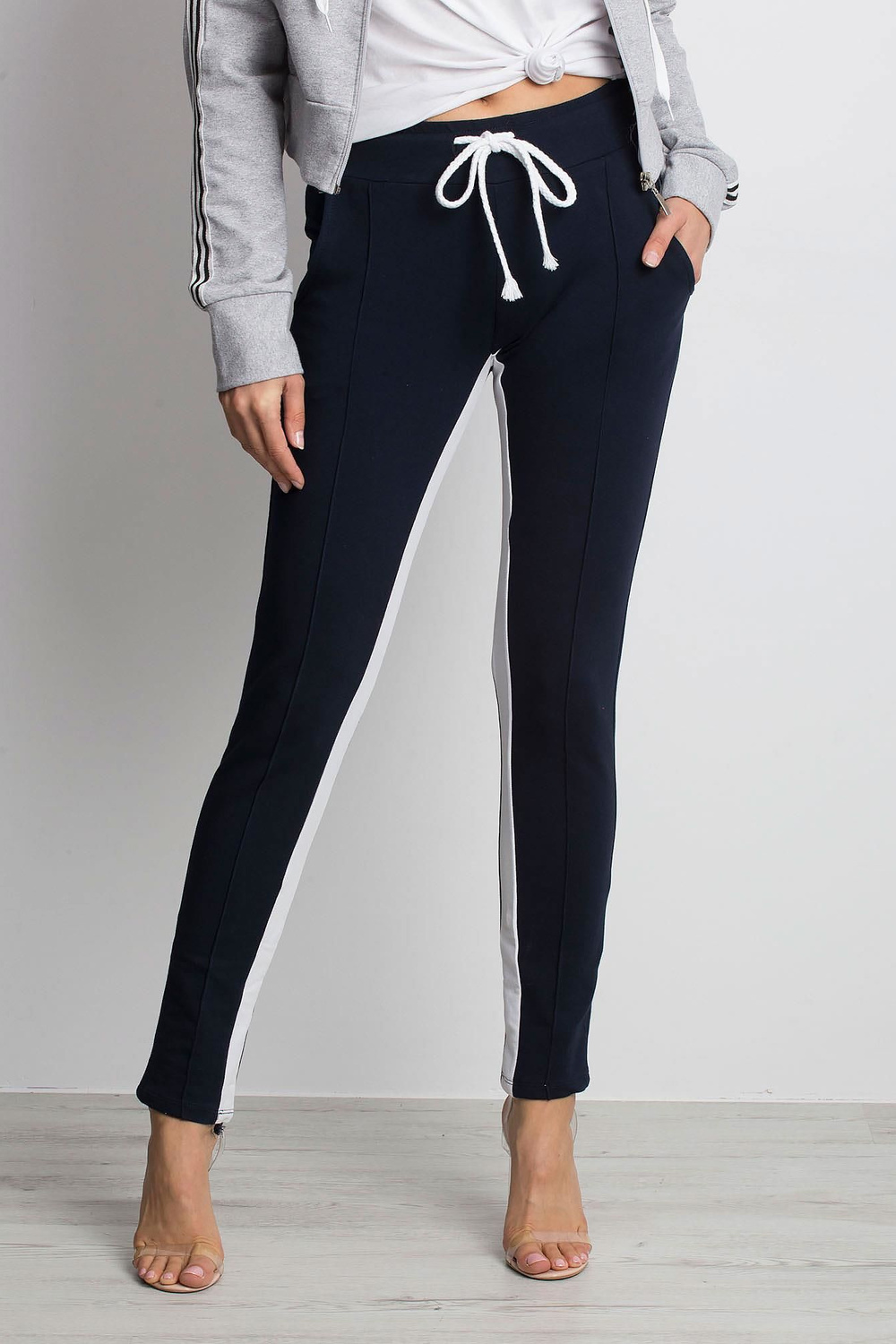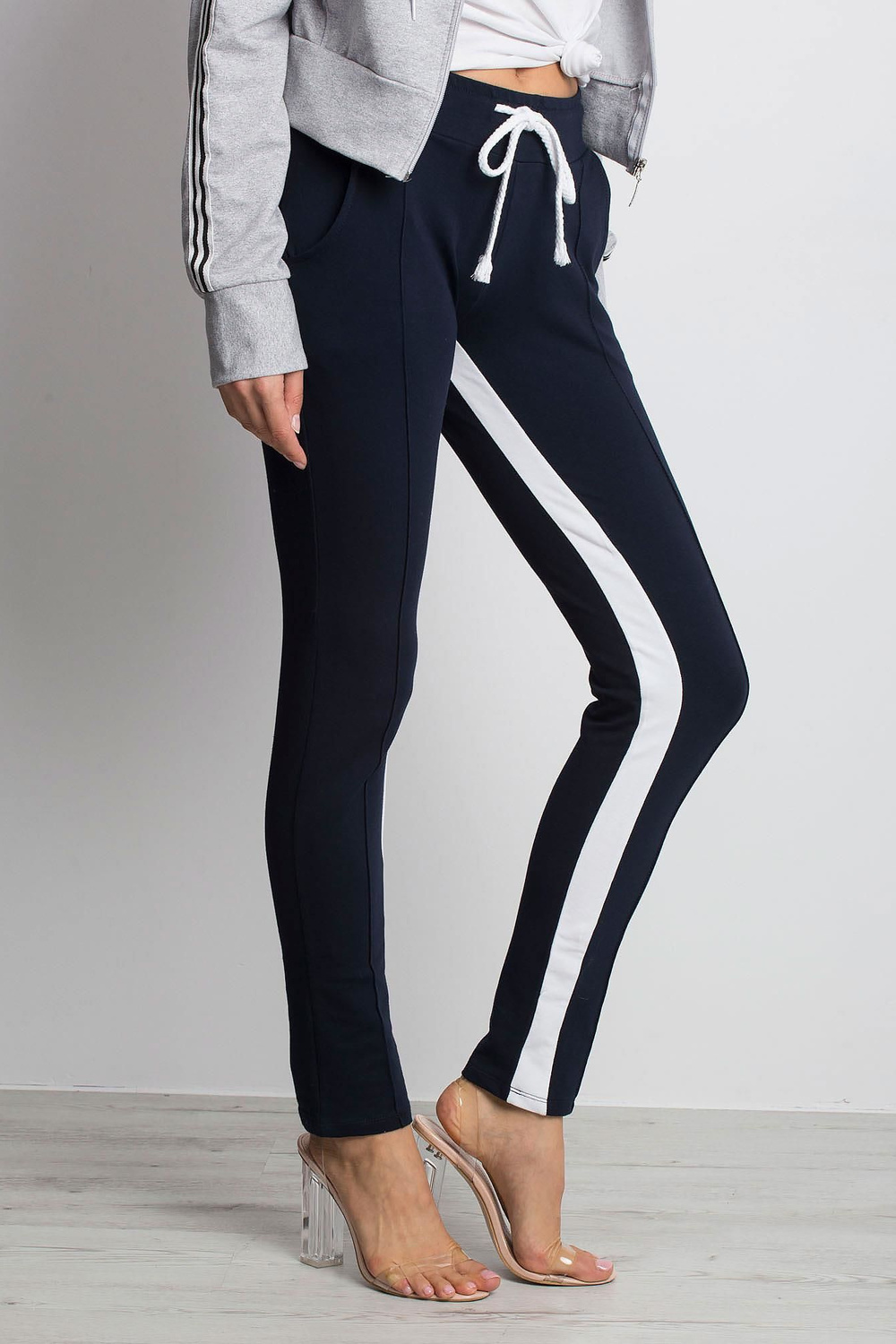 Mėlynos spalvos sportinės kelnės, apibrėžtos yra produktas, skirtas tiems mūsų klientams, kurie mėgsta derinti populiariausias tendencijas ir patogumą naudoti. Pagrindinės sportinės kelnės pagamintos iš aukščiausios kokybės medvilnės, kuri švelniai priglunda prie silueto. Nepaisant prigludusio kirpimo, sportinės kelnės netrukdo judėti. Juose galite laisvai eiti į treniruotes ar pasivaikščioti su šeima. Tai ne vienintelės progos, kai galite apsivilkti šį patogų modelį. Tai bus puikus stiliaus pagrindas darbui ar apsipirkti. Madingos visumos žavesio prideda kontrastingos juostelės ir įspūdingi dygsniai. Mūsų stilingas kelnes galite dėvėti įvairiais būdais. Komplektas su marškinėliais ir megztiniais sukurs įvaizdį įprastai sportiškame klimate. Jei norite juose pateikti save labai moteriškai, rinkitės joms crop top ir batus su kulnais. Negaiškite daugiau laiko! Jau dabar išsirinkite patogias sportines kelnes ir kurkite skoningus kasdienius drabužius.