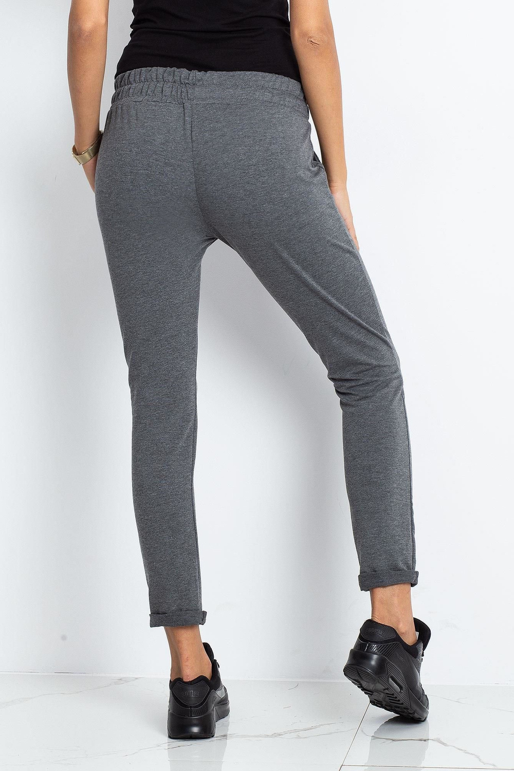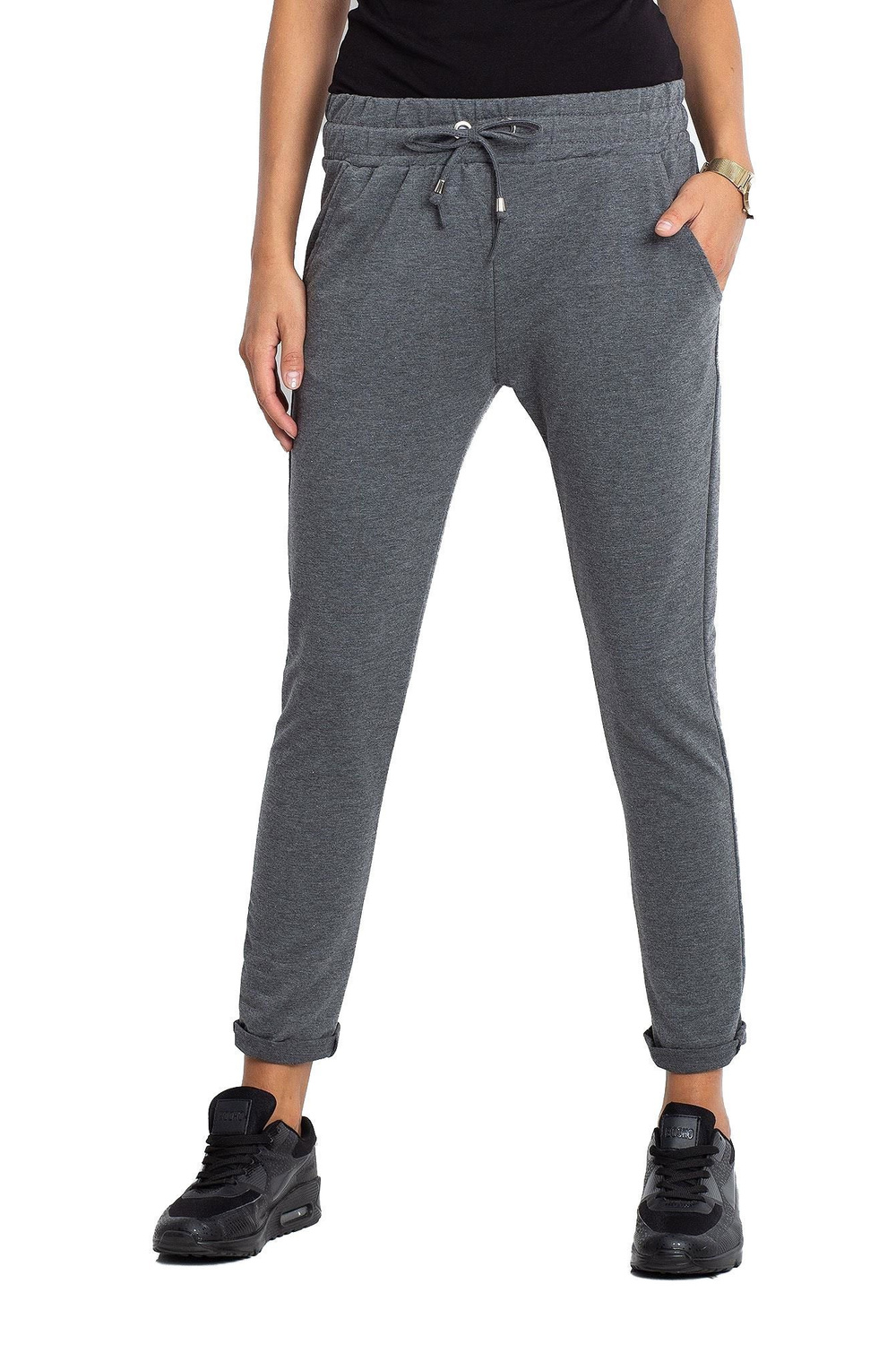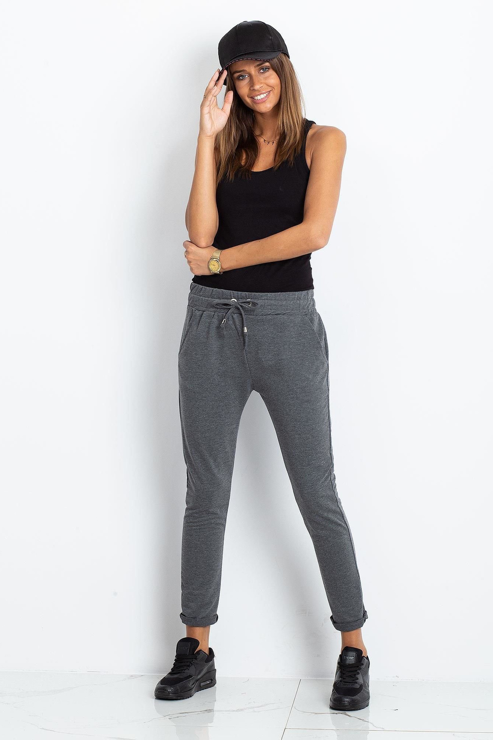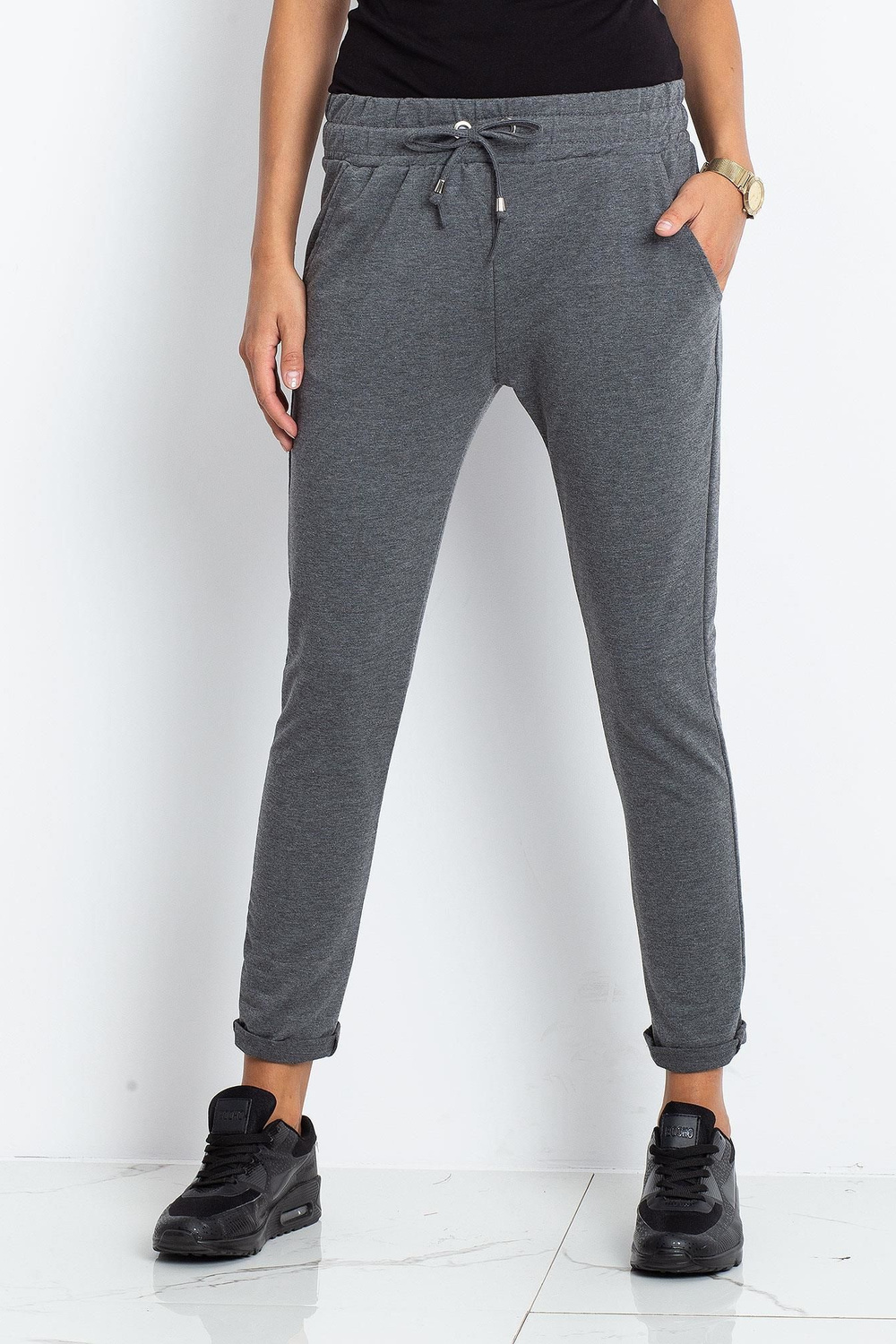 Tamsiai pilkos spalvos kelnės . Patogios ir madingos sportinės kelnės, kurių sudėtyje yra daug medvilnės, yra daugelio moterų, mėgstančių patogią aprangą kasdieniame gyvenime, svajonė. Toks modelis yra labai universalus ir nesenstantis, be to, jis tinka prie daugelio kitų drabužių ir jį galite nešioti įvairiomis progomis. Mūsų sportinės kelnės idealiai tinka ne tik kasdienai, bet ir sportuojant ar dirbant biure namuose. Tokį universalumą siūlo tik antblauzdžiai! Šios pagrindinės sportinės kelnės yra pagamintos iš aukštos kokybės medžiagų, kurias sudaro didelis kiekis grynos medvilnės ir nedidelis elastano priedas. Todėl juos itin patogu nešioti, jie yra erdvūs ir malonūs liesti. Tokie moteriški sportiniai kostiumai tinka prie elegantiškų viršutinių ir aukštakulnių batų arba prie mūsų kolekcijos marškinėlių ir madingų sportbačių.