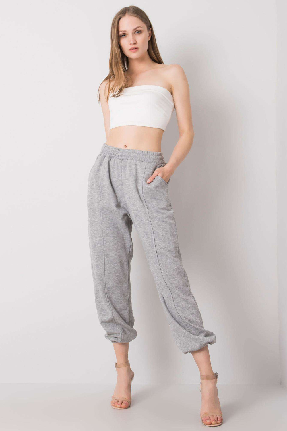 Pilkos sportinės kelnės Maye. medžiagasudėtis: 70% medvilnė, 30% poliesteris skalbimo būdas: skalbimas mašinoje 30°C Modelis dėvi M dydį. Modelio išmatavimai: aukštis 174 cm, krūtinė 81 cm, juosmuo 60 cm, klubai 89 cm. M dydžio kelnių matmenys išmatuoti fla