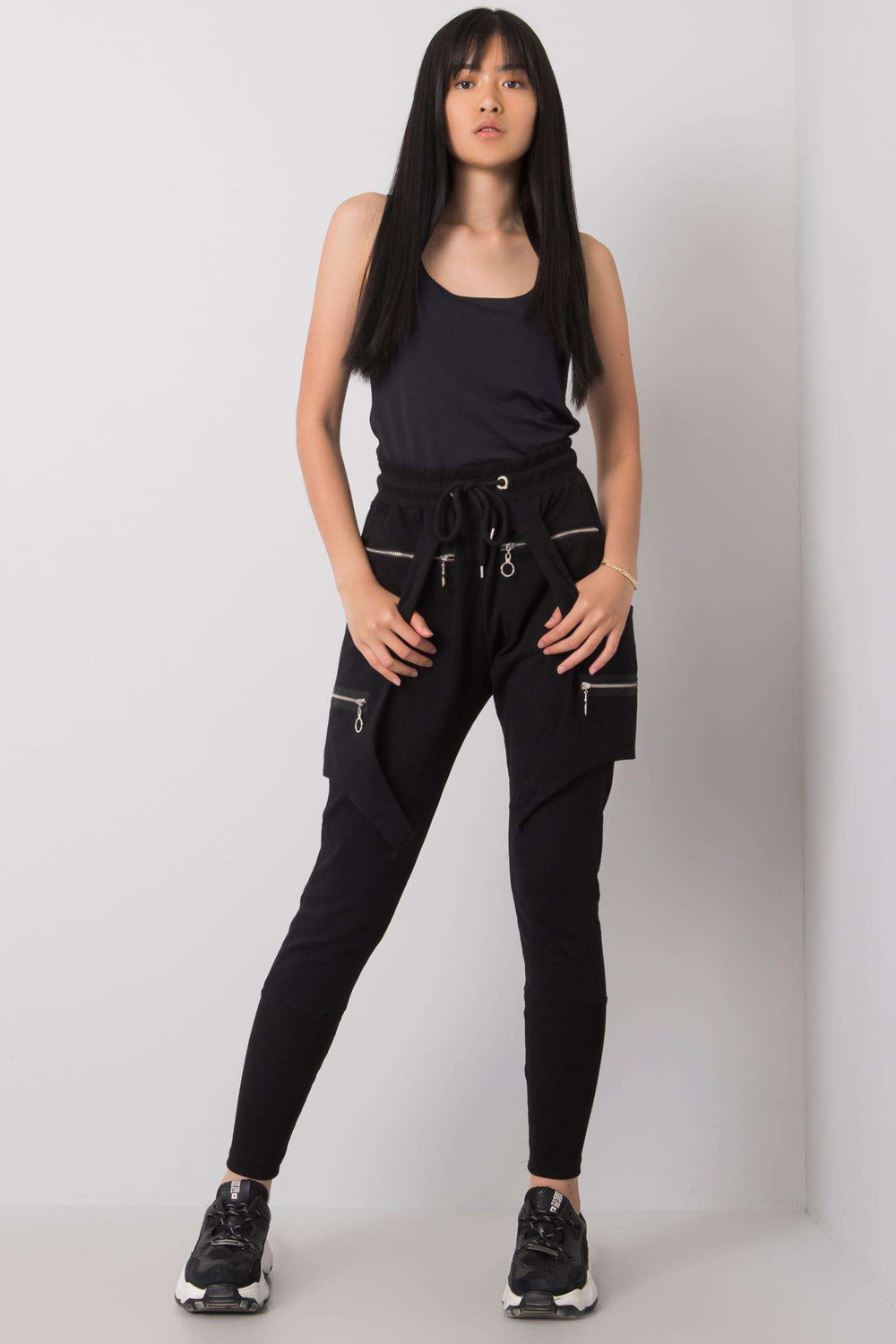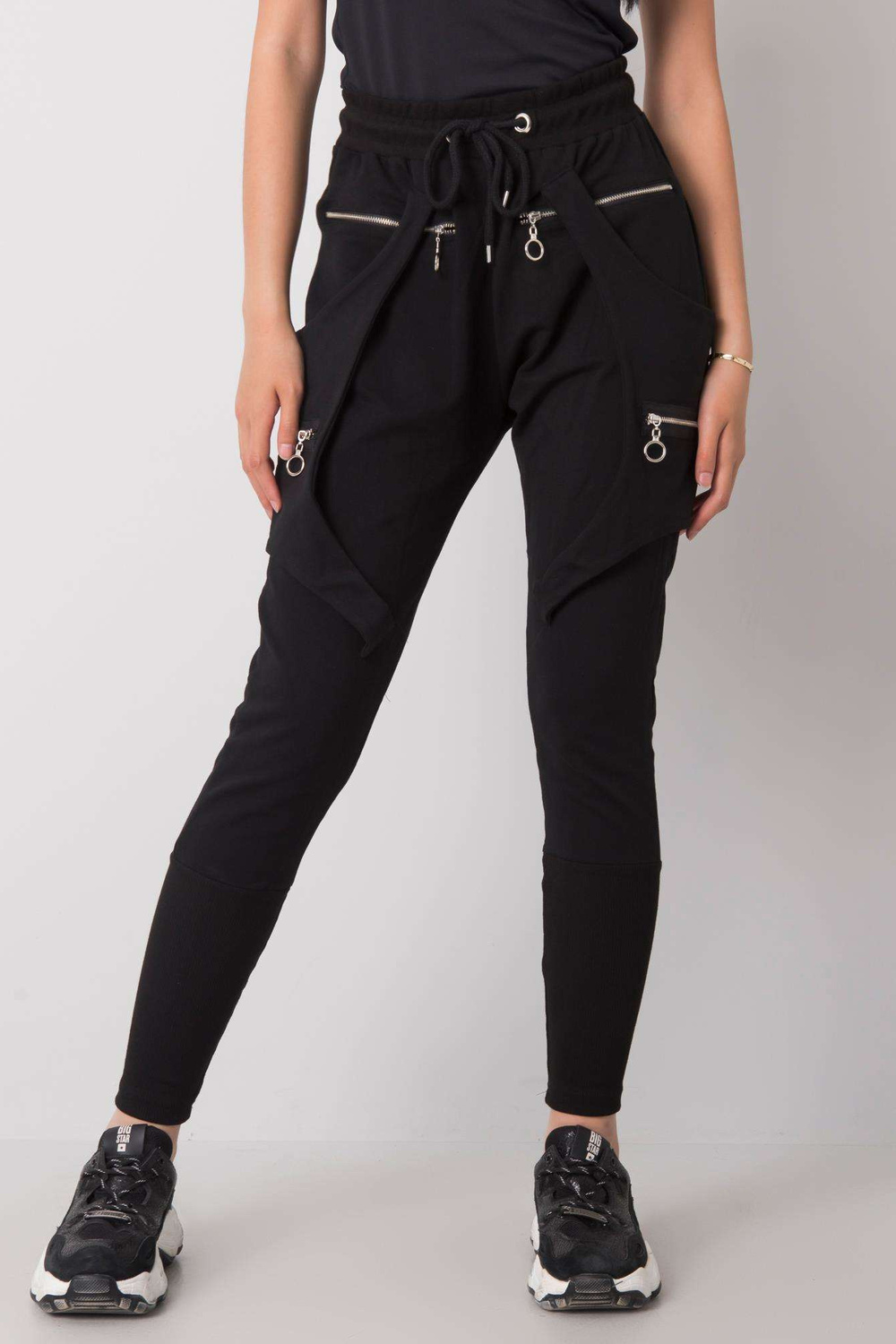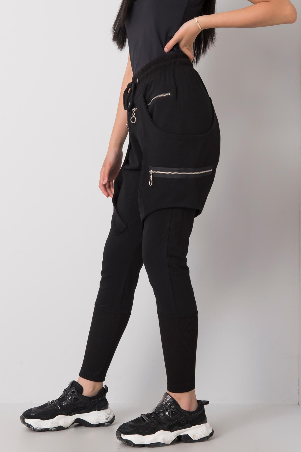 priedai: kišenės, elastingas juosmuo, užtrauktukai, petnešėlės, raišteliai