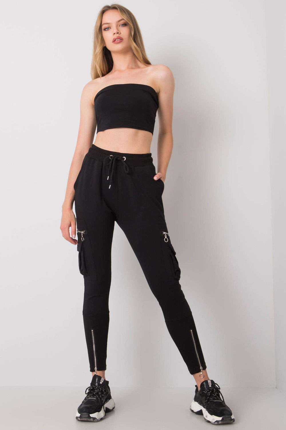Juodos Hemmy sportinės kelnės. aksesuarai: kišenės, petnešėlės, elastinė juosmuo, slankikliai kojų apačioje medžiagasudėtis: 90% medvilnė, 10% elastanas skalbimo būdas: skalbimas skalbimo mašinoje 30°C Modelis dėvi S dydį. Modelio išmatavimai: aukštis 174