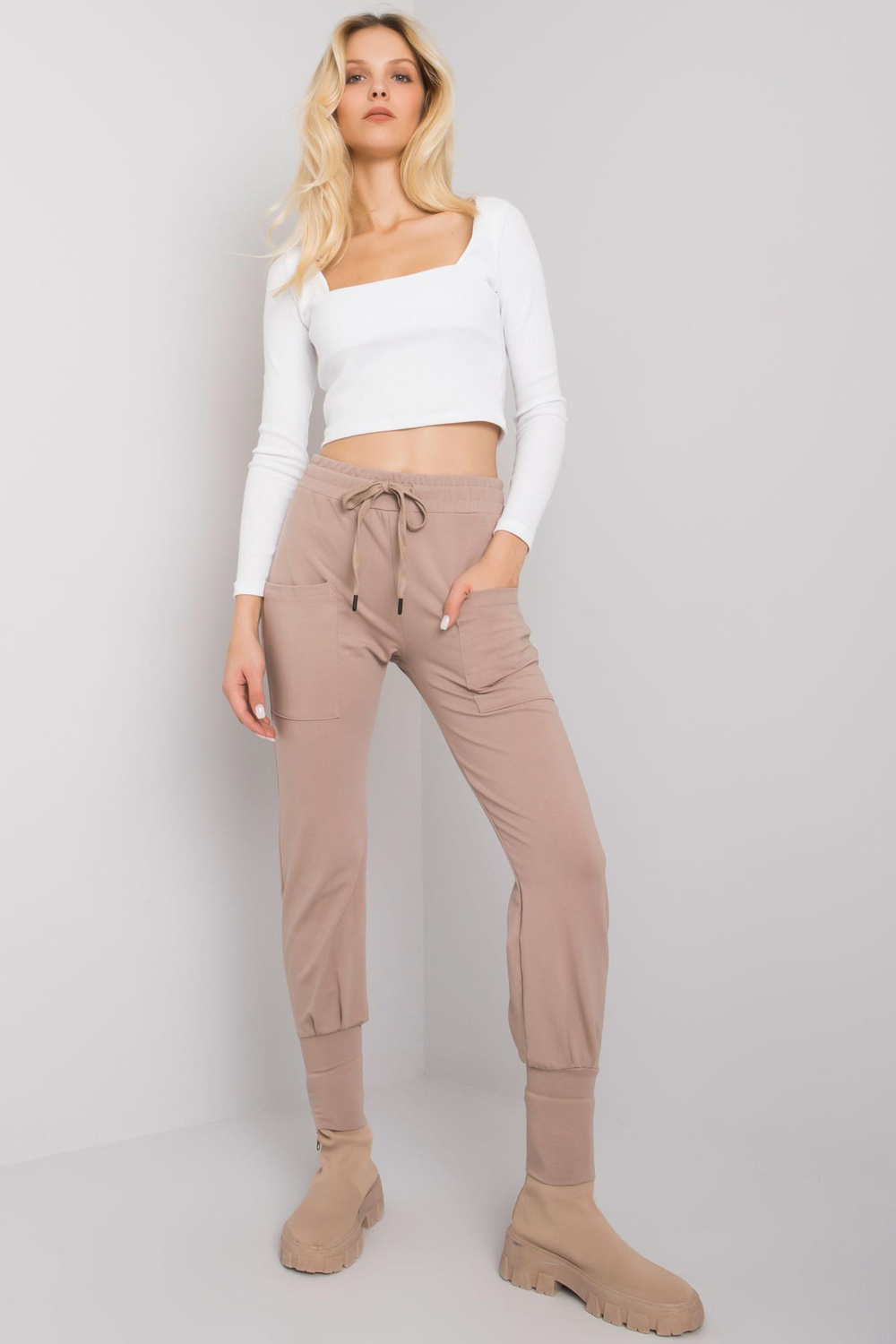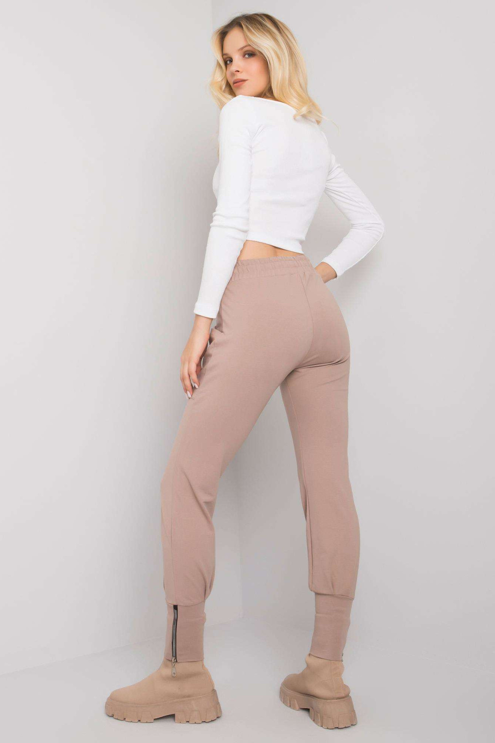 Tamsiai smėlio spalvos sportinės kelnės su užtrauktukais Cindy RUE PARIS.