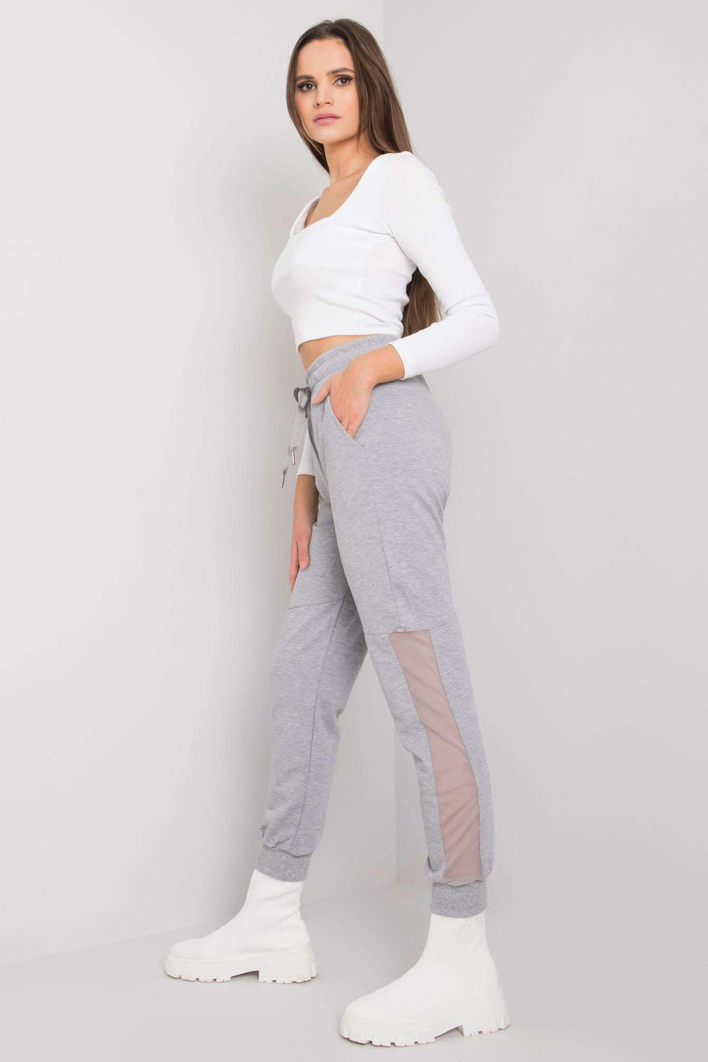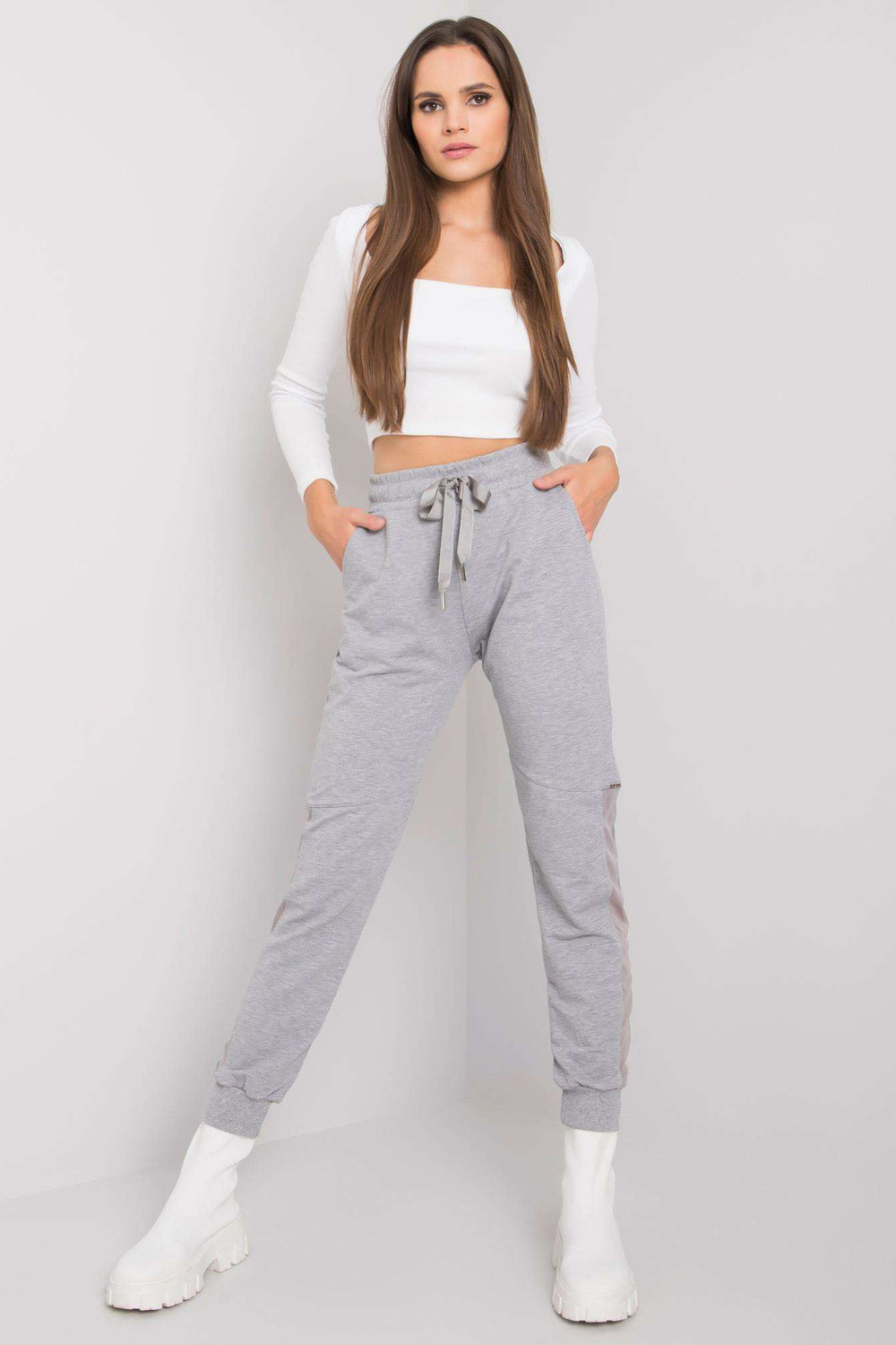 Pilkos spalvos medvilninės sportinės kelnės Susan.