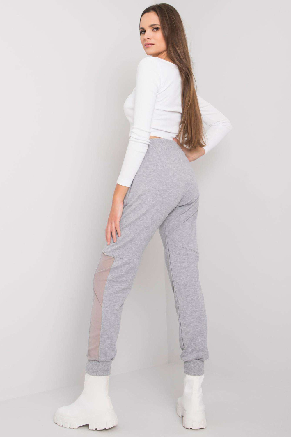 Greymelange medvilninės sportinės kelnės Susan. priedai: tinkliniai įdėklai medžiagos sudėtis: 90% medvilnė, 10% elastanas skalbimo būdas: skalbimas mašinoje 30°C Gaminio kodas: RV-DR-6896.48P Dominuojantis raštas: be rašto Stilius: kasdienis, miesto stiliaus progai: kasdienis, lauke div>