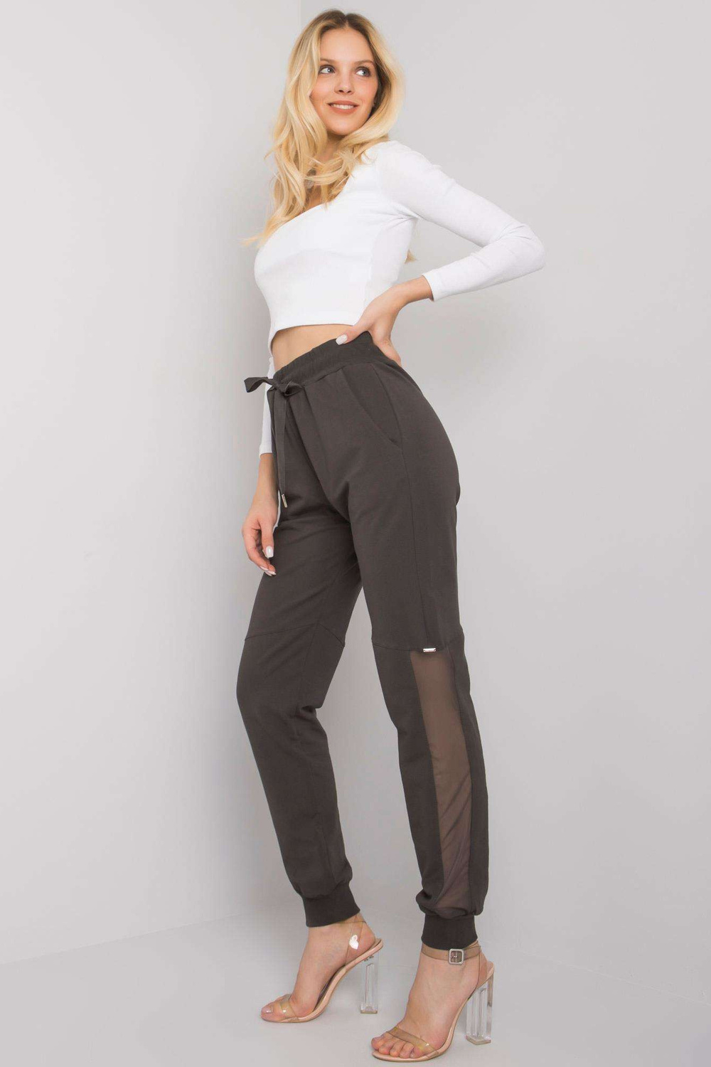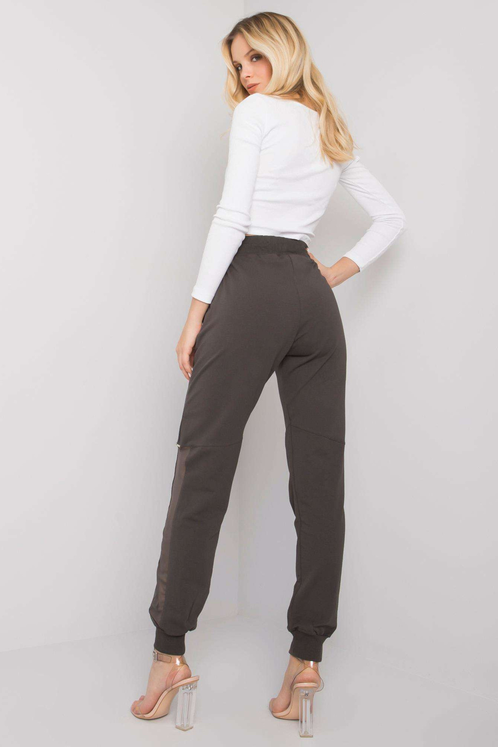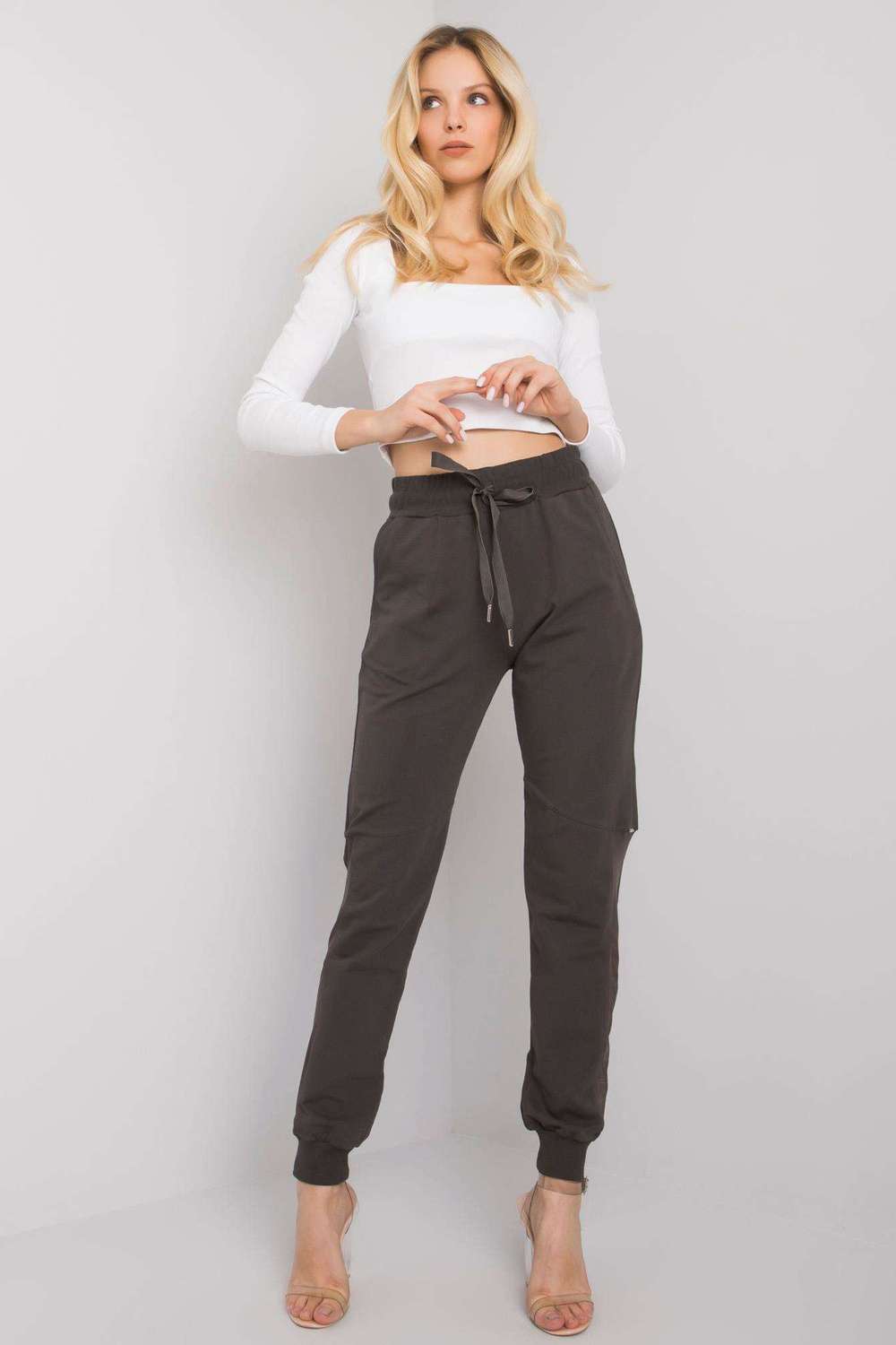 Tamsios chaki spalvos medvilnės sportinės kelnės Susan