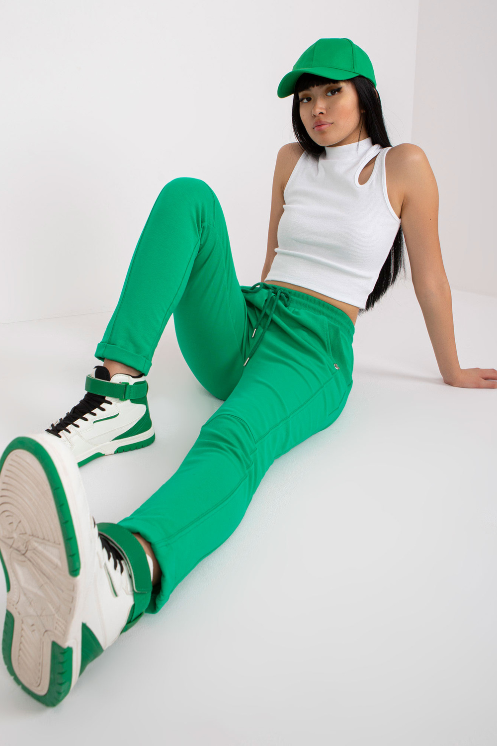 Žalios medvilnės sportinės kelnės aukštu juosmeniu.