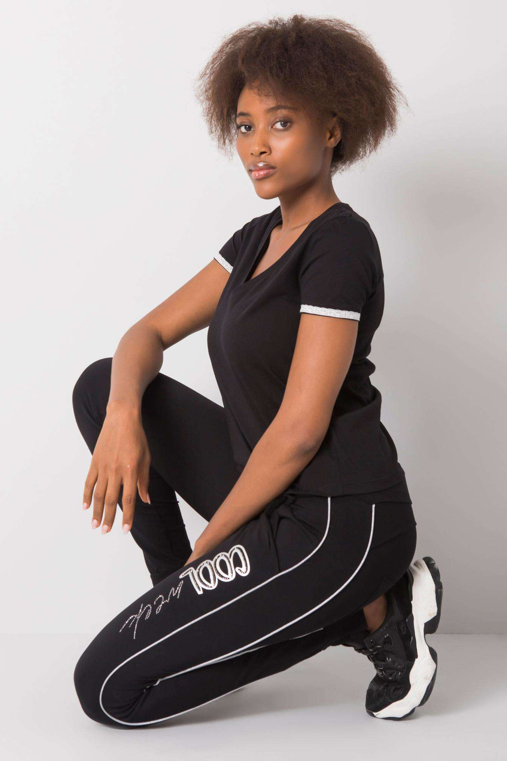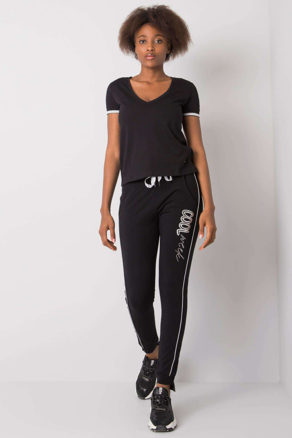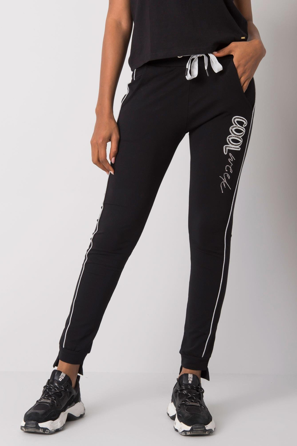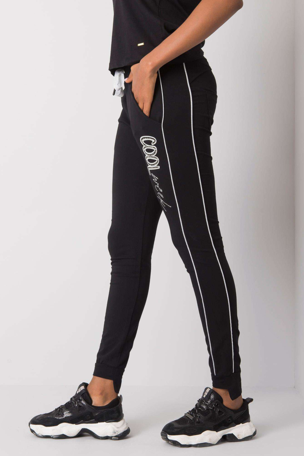 Juodos sportinės kelnės su „Abia“ aplikacijomis.