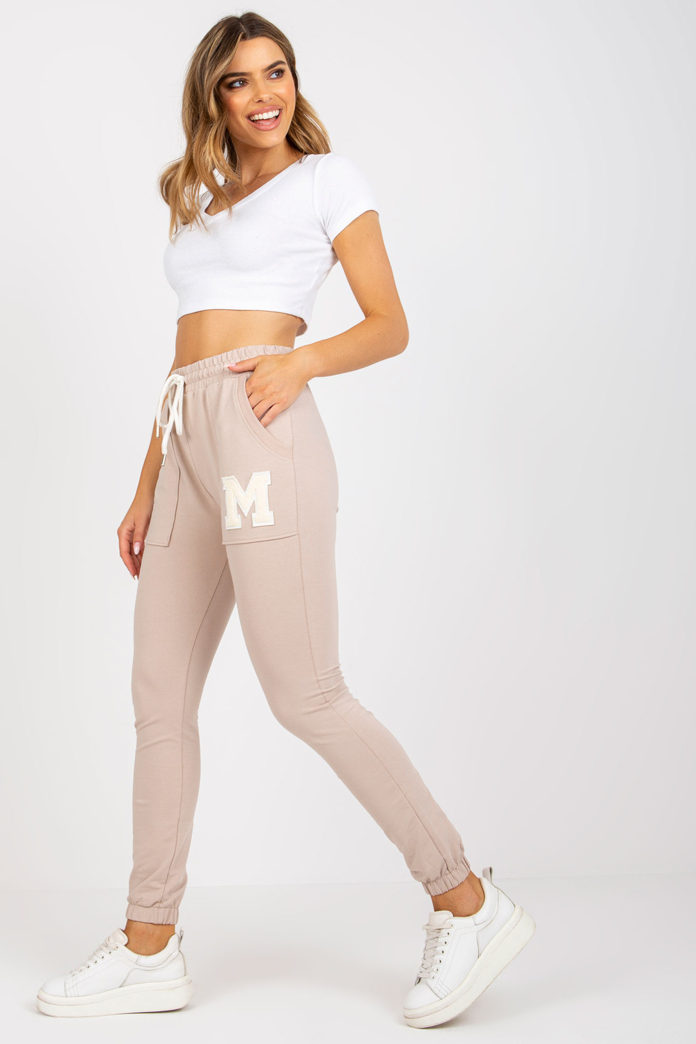 Smėlio spalvos sportinės kelnės su kišenėmis .