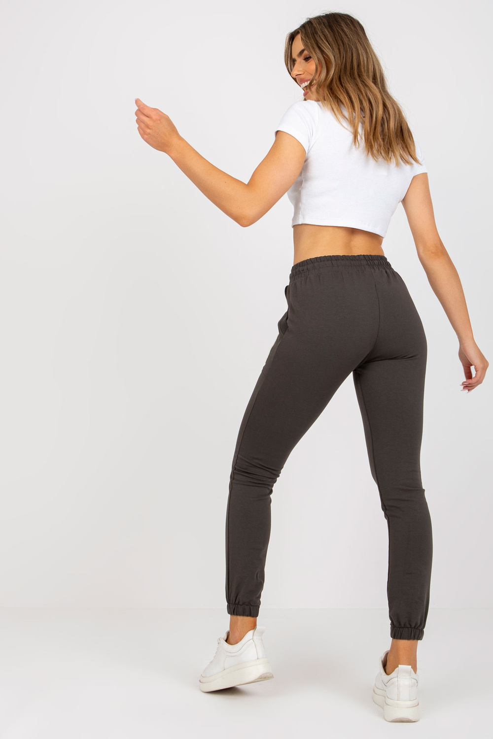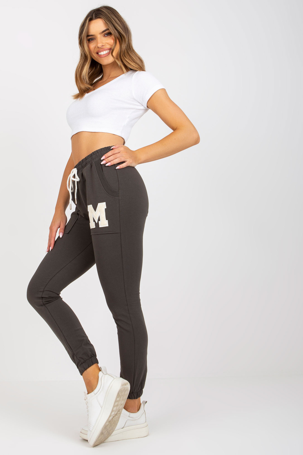 Chaki medvilnės sportinės kelnės su lopinėliu.