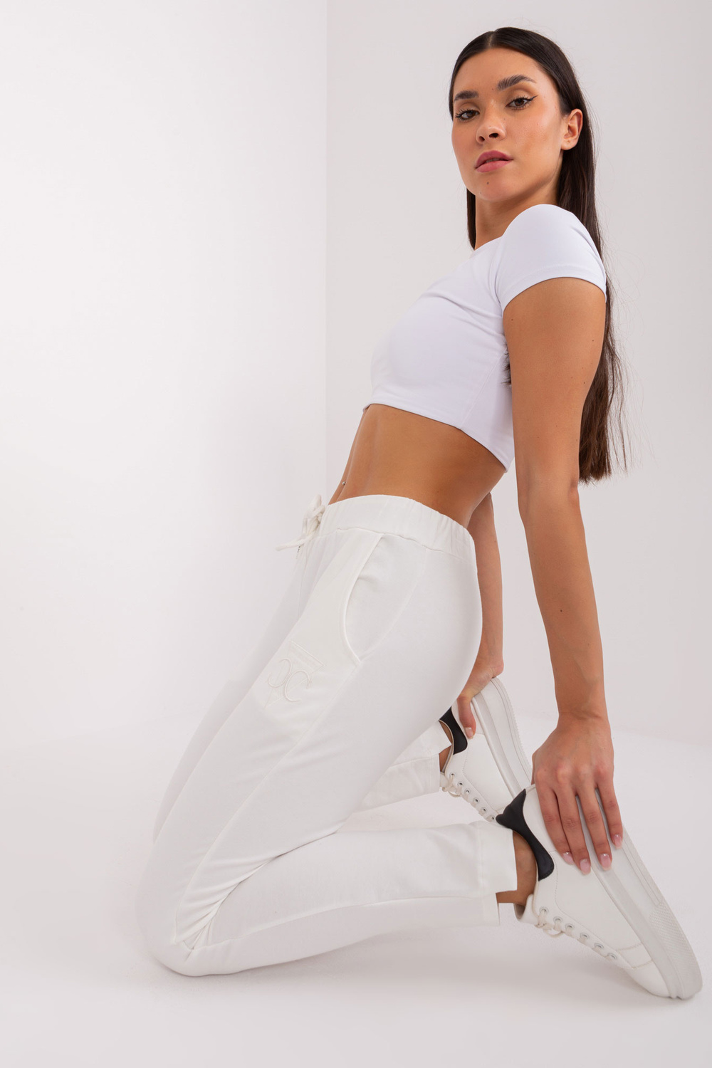 Ecru moteriškos sportinės kelnės su kišenėmis .