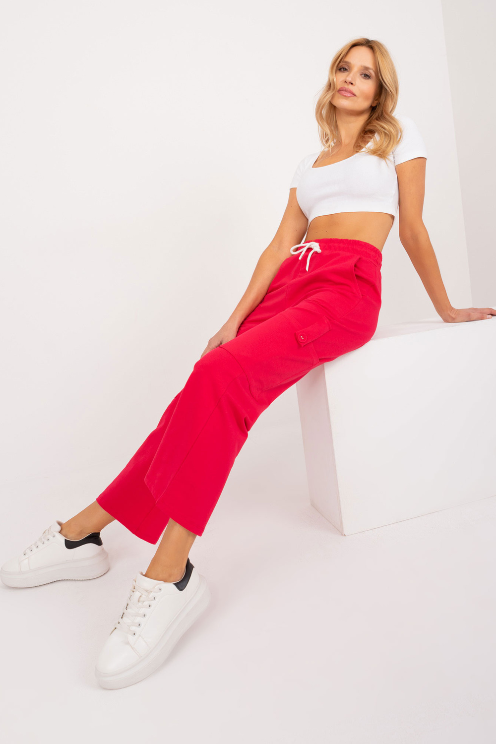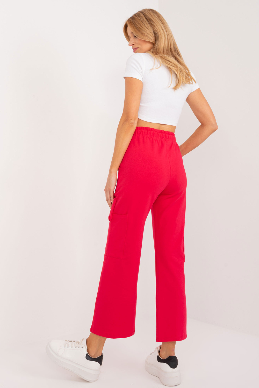 S/M dydžio kelnių matmenys išmatuoti plokščiai: juosmens plotis - 36 cm, juosmens aukštis - 34 cm, bendras ilgis - 94 cm.