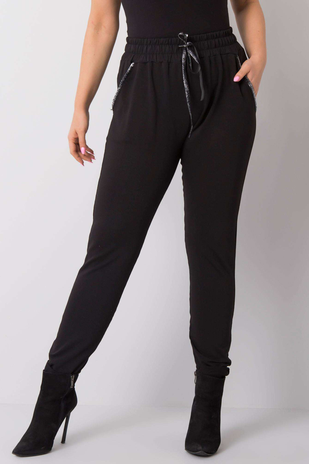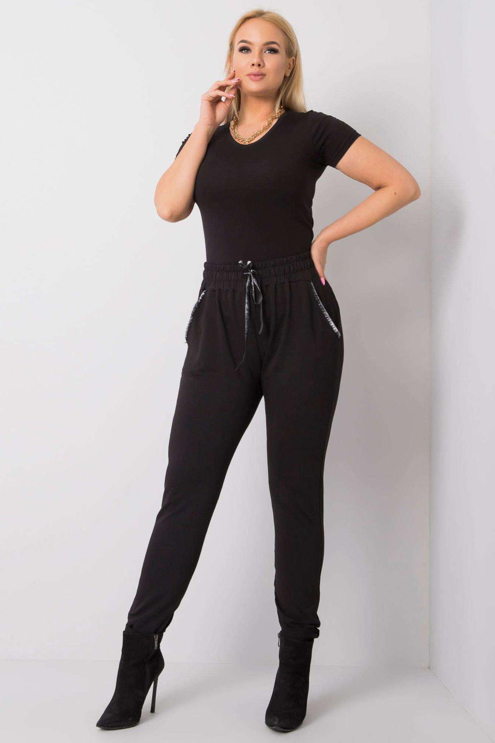Juodos medvilninės kelnės didesniems dydžiams.