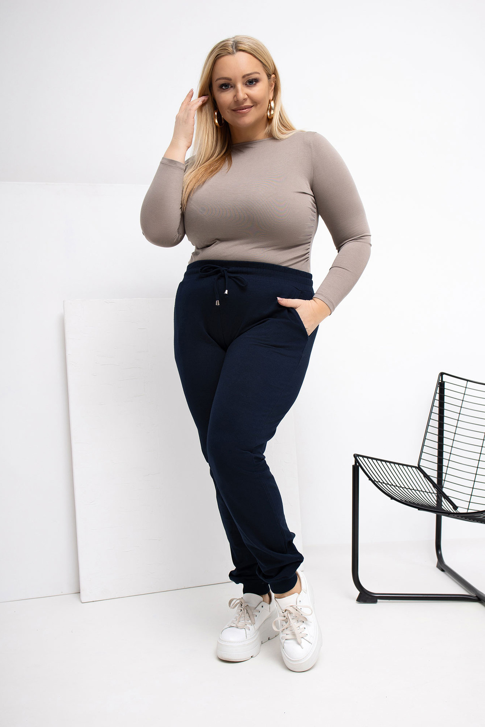 Modelis dėvi 2XL dydį. Modelio išmatavimai: ūgis 167 cm, krūtinė 118 cm, liemuo 90 cm, klubai 118 cm.