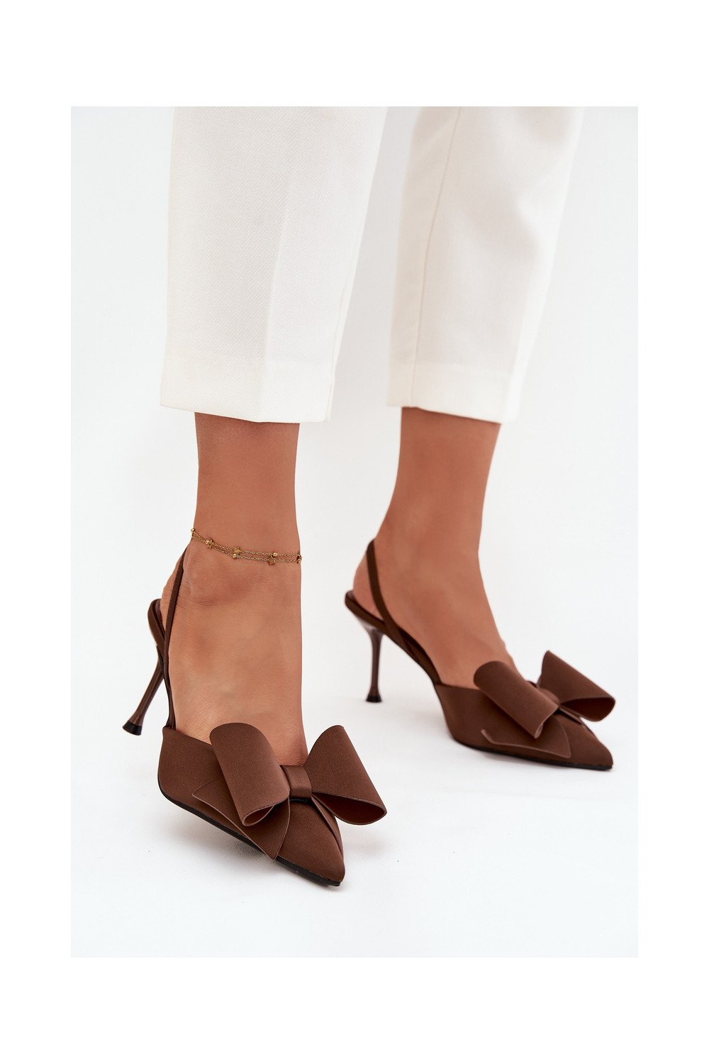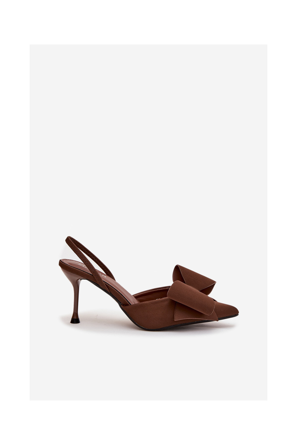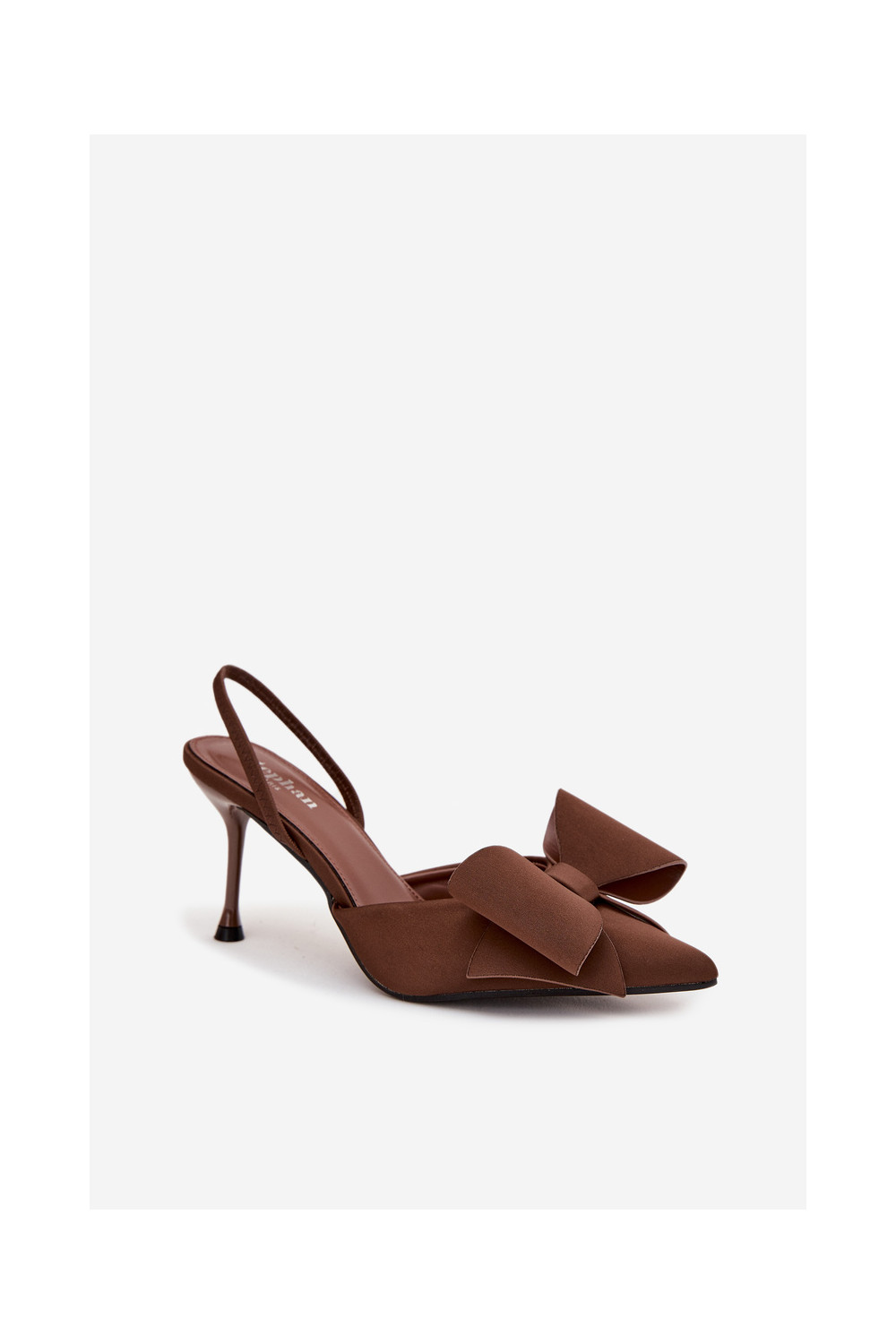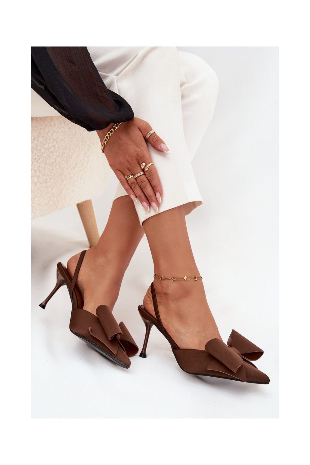 Aukštakulniai bateliai su atviromis kulnimis ir kaspinėliu rudos spalvos Eklevia