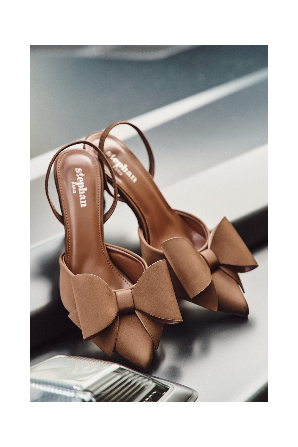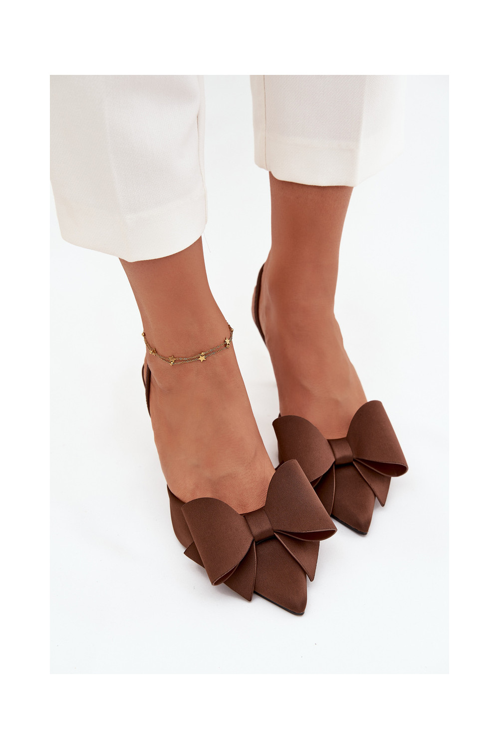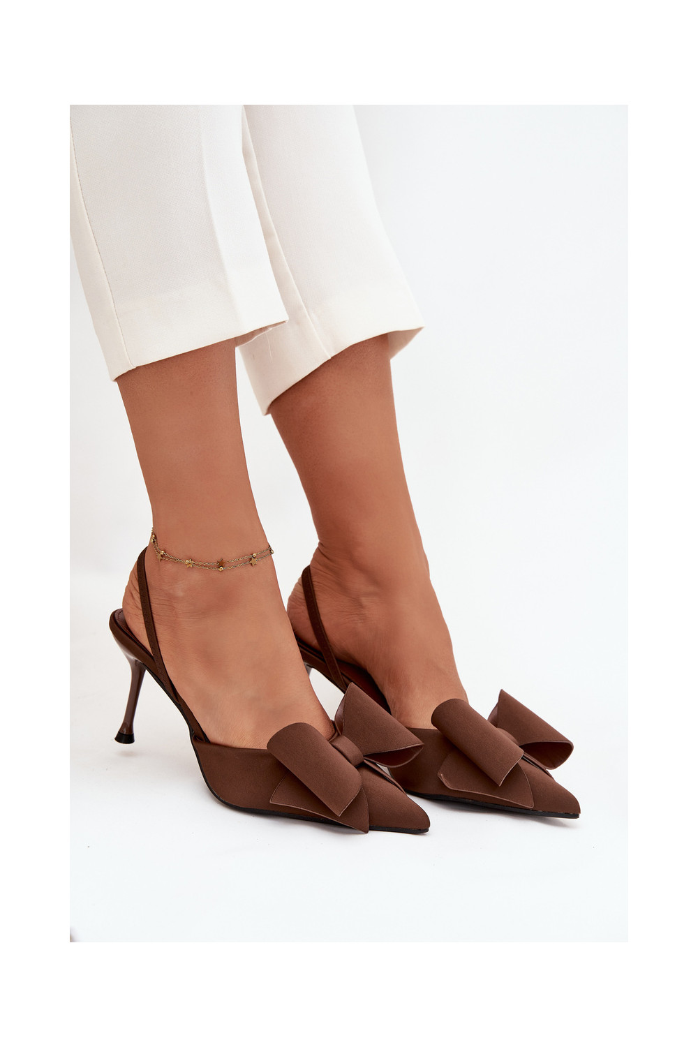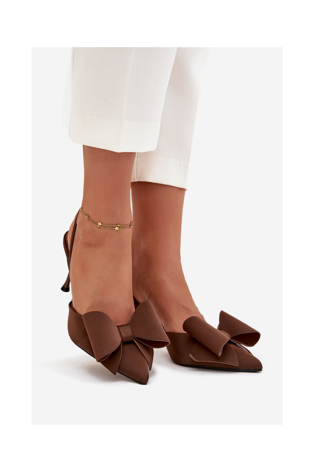 Aukštakulniai bateliai su atviromis kulnimis ir kaspinėliu rudos spalvos Eklevia