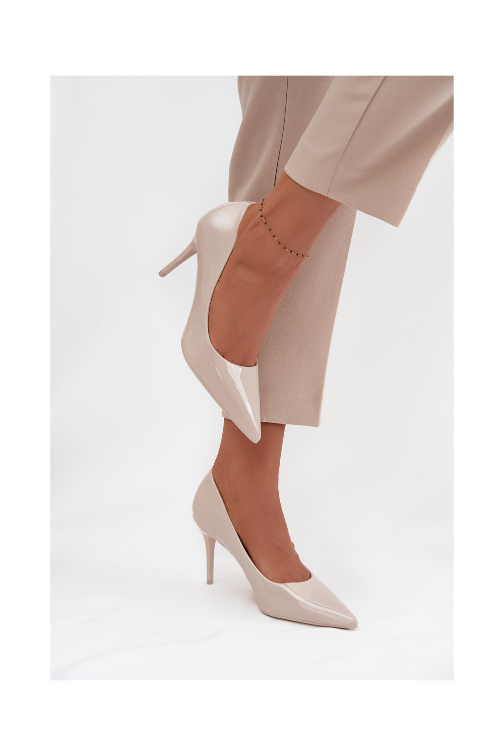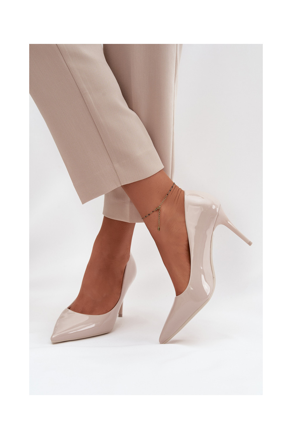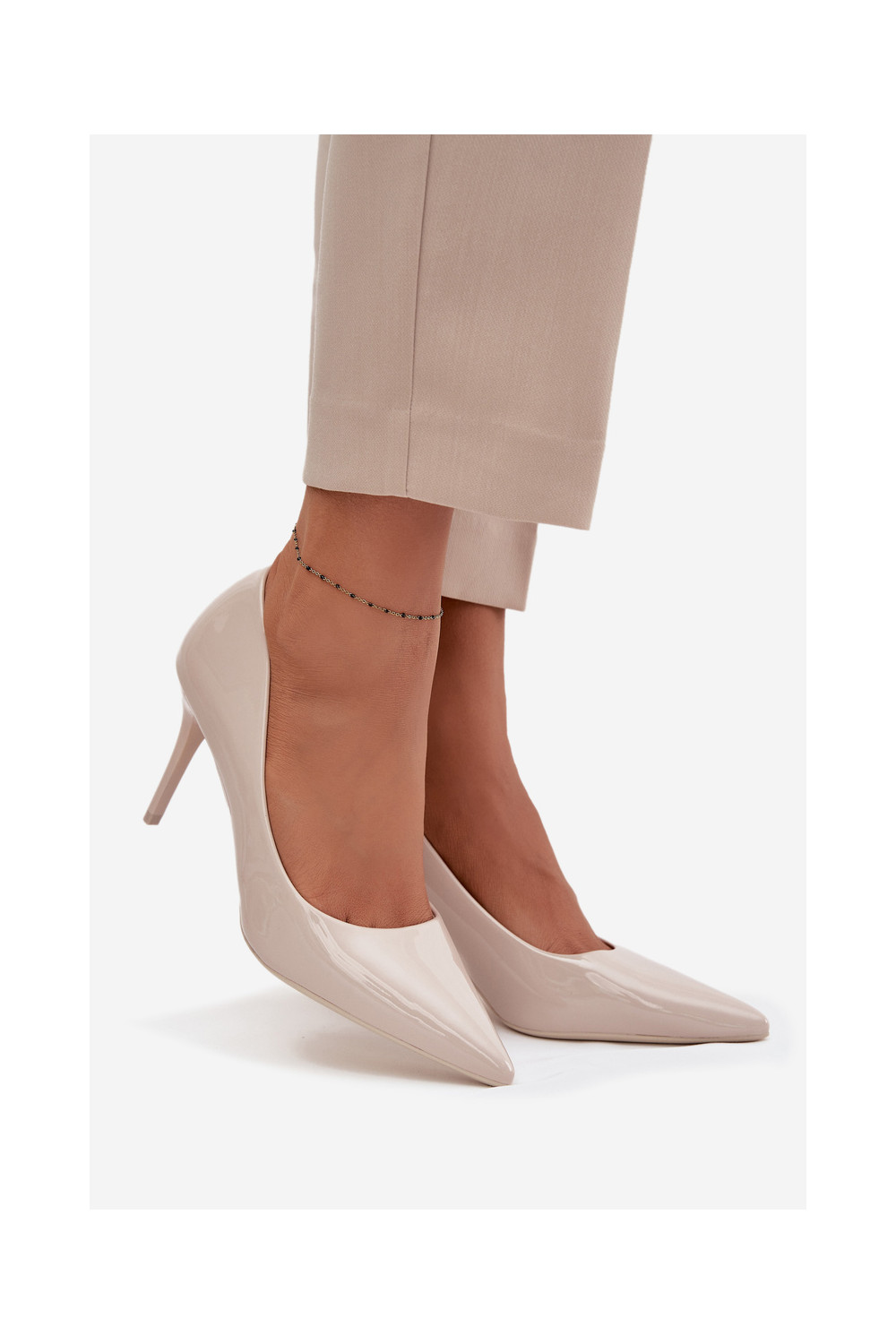 Lakuotos dirbtinės odos aukštakulniai bateliai moterims su smailiais galais dramblio kaulo spalvos Jadira