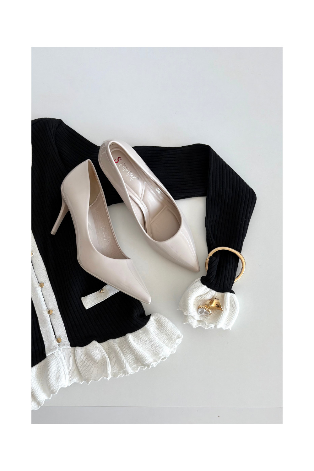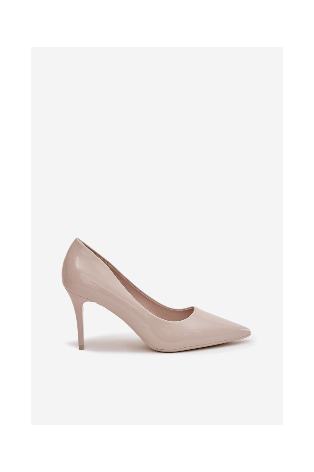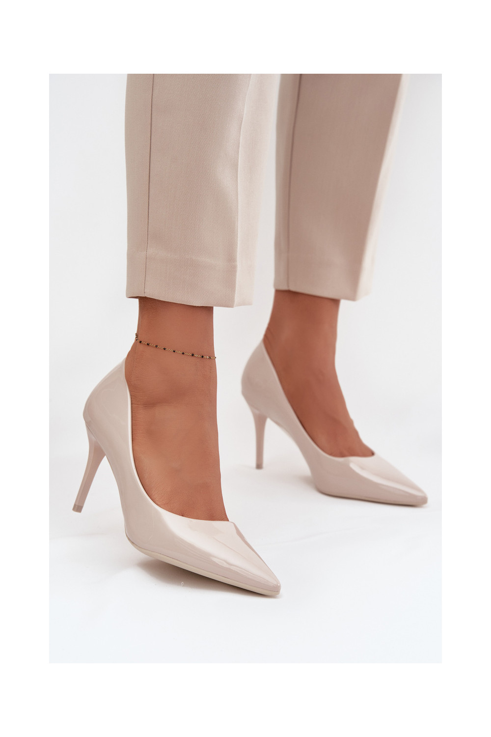 Lakuotos dirbtinės odos aukštakulniai bateliai moterims su smailiais galais dramblio kaulo spalvos Jadira