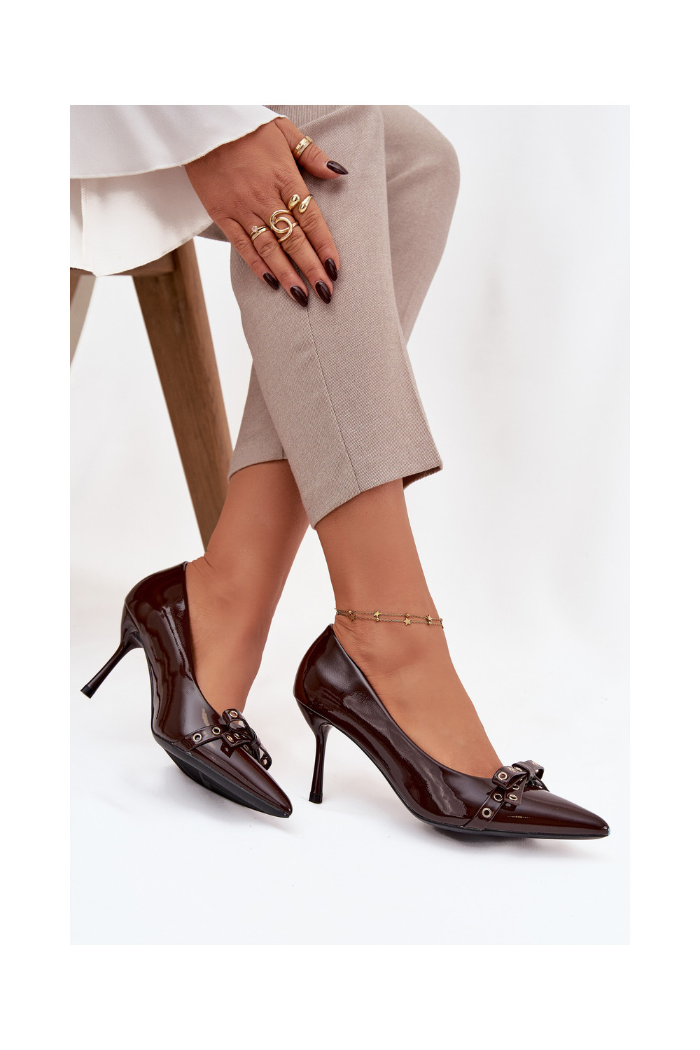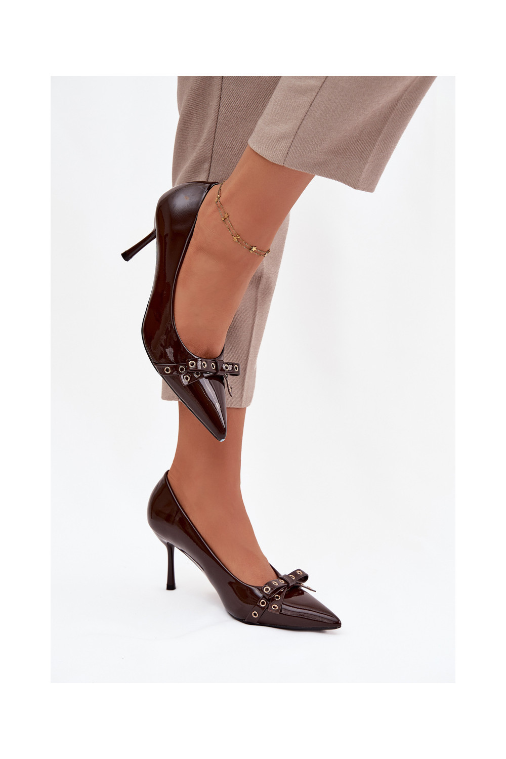su lako efektu aukštakulniai bateliai su kaspinais Czekoladowe Janisse