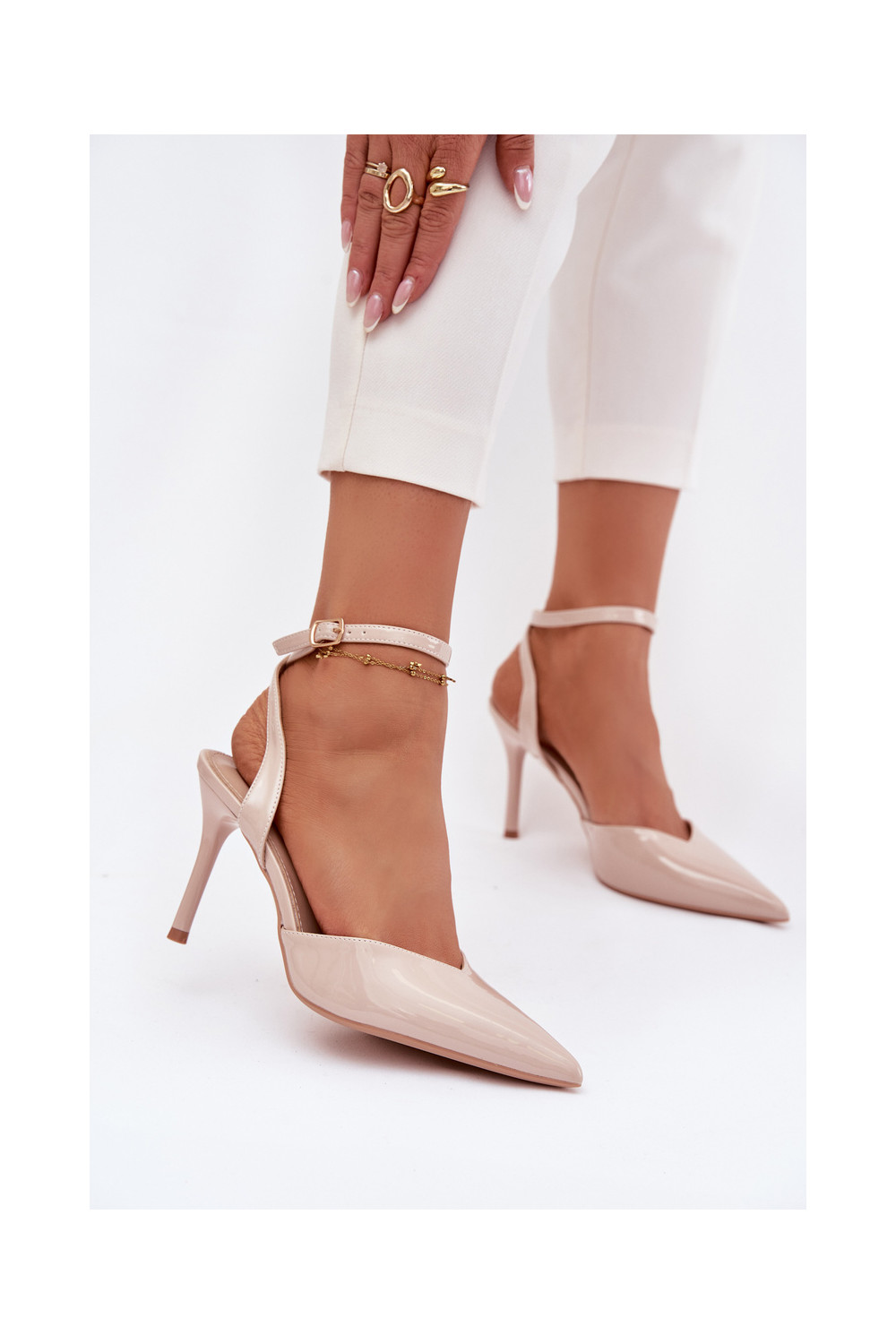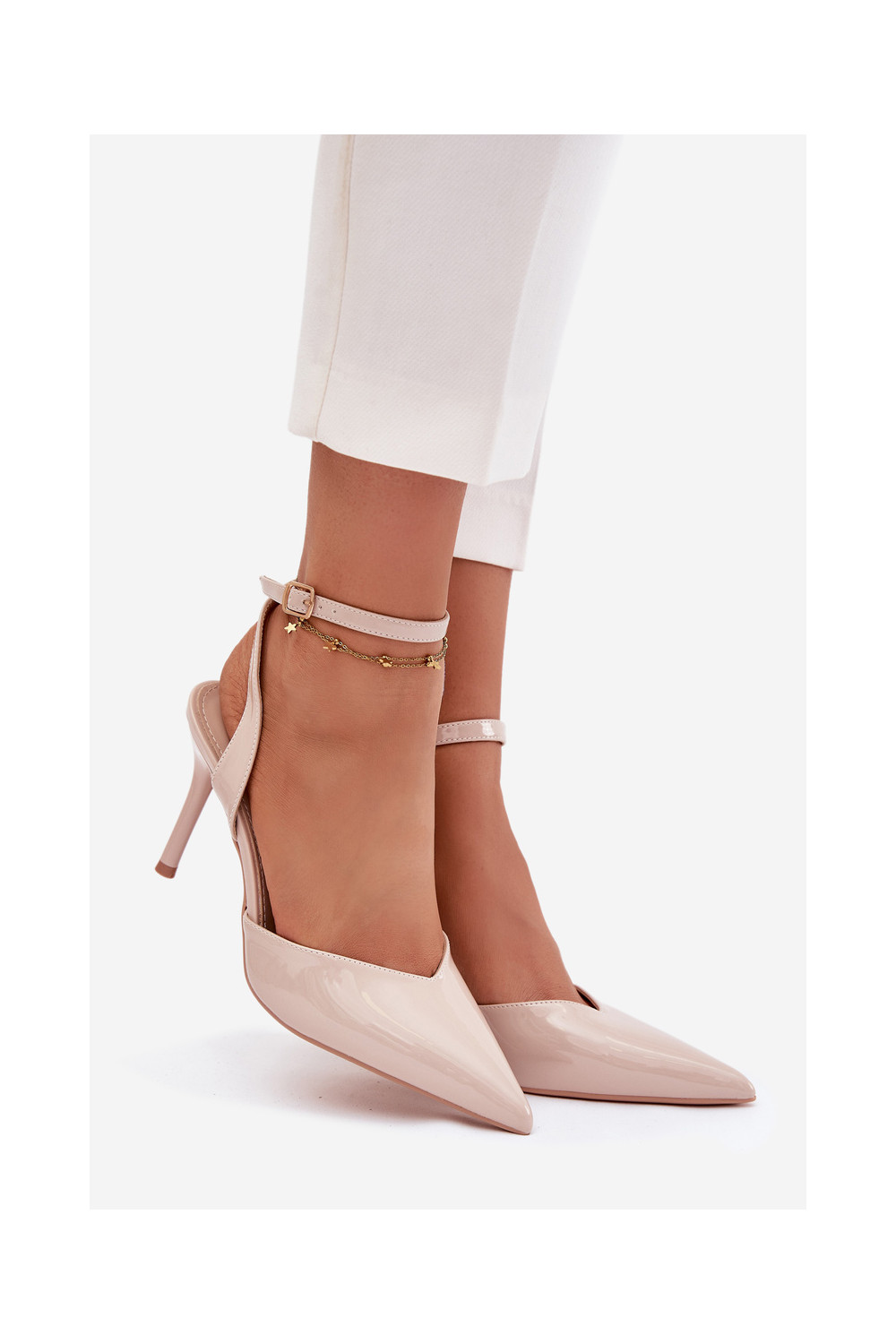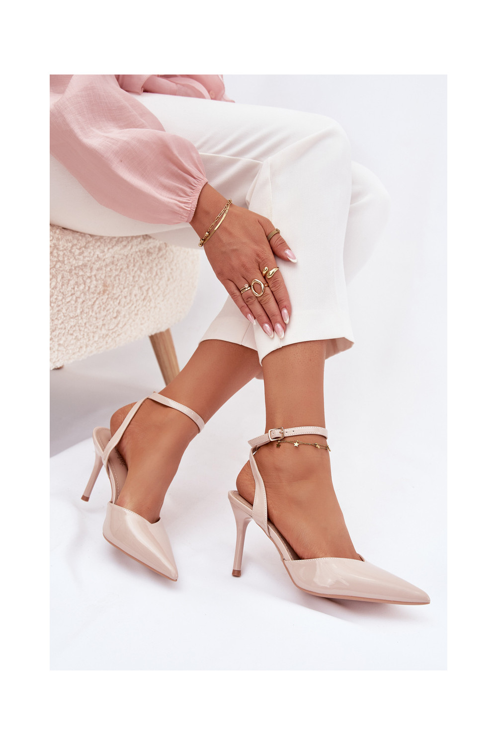 su lako efektu aukštakulniai bateliai su atviru kulnu smėlio spalvos Laretta