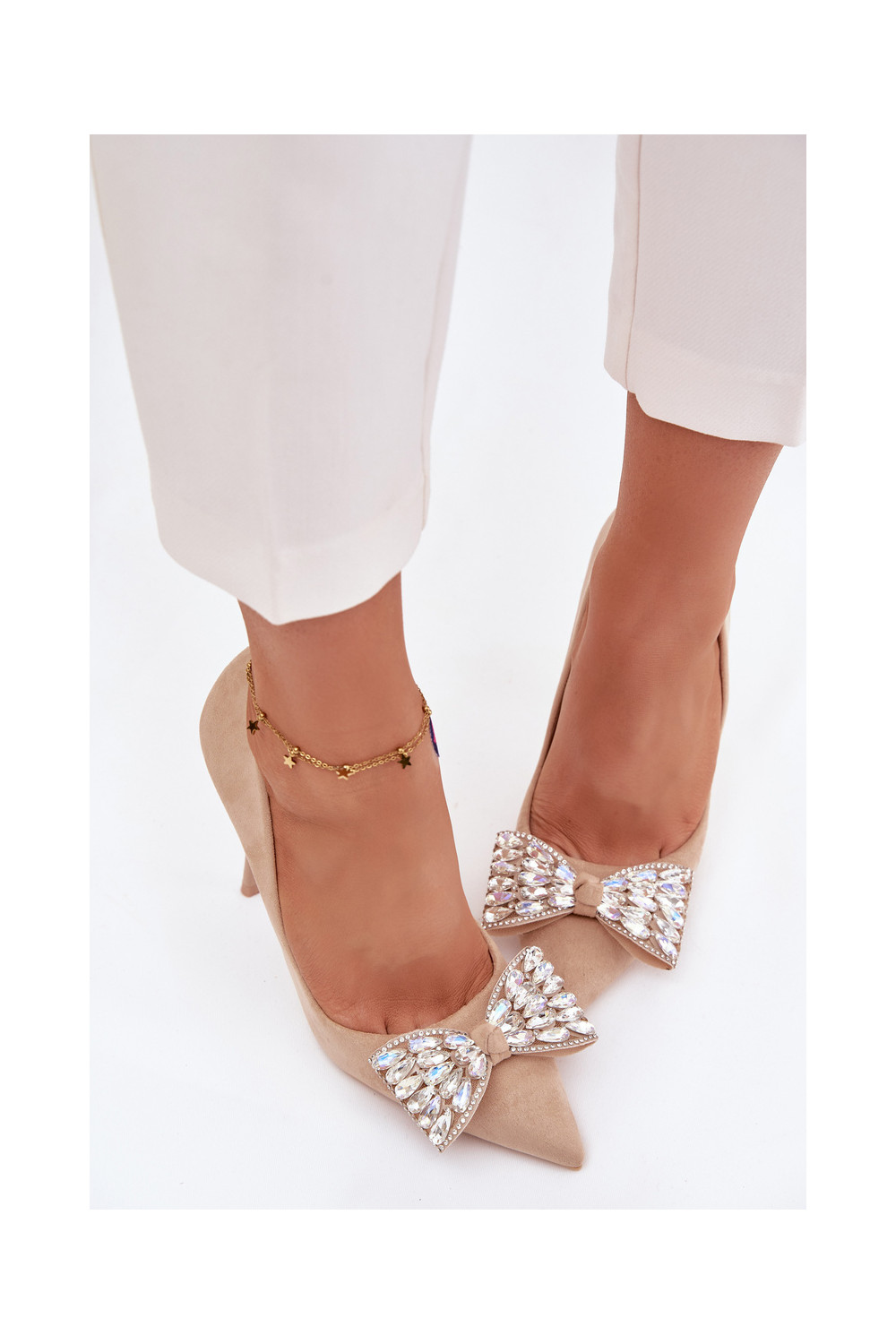 Aukštakulniai bateliai su kaspinais ir kristalais, smėlio spalvos Turirivine