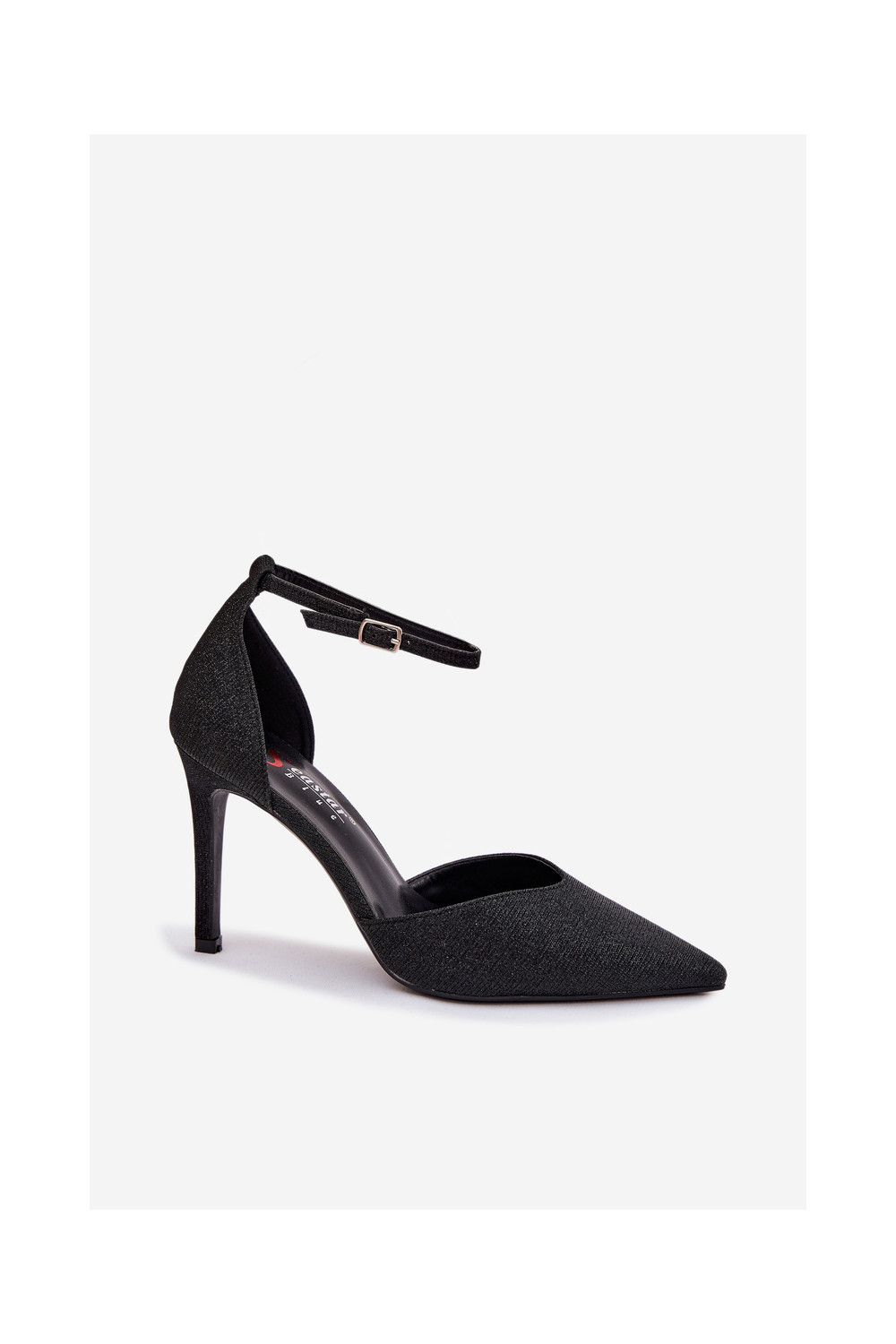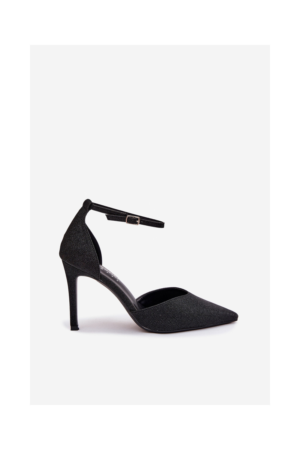 Blizgantys aukštakulniai bateliai su dirželiais, juodos spalvos Joranne
