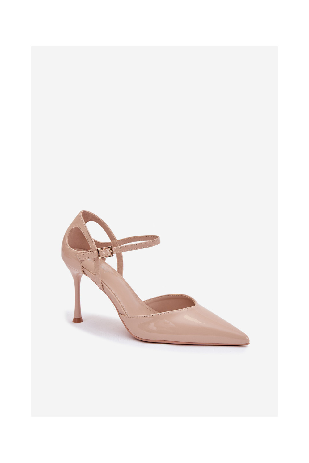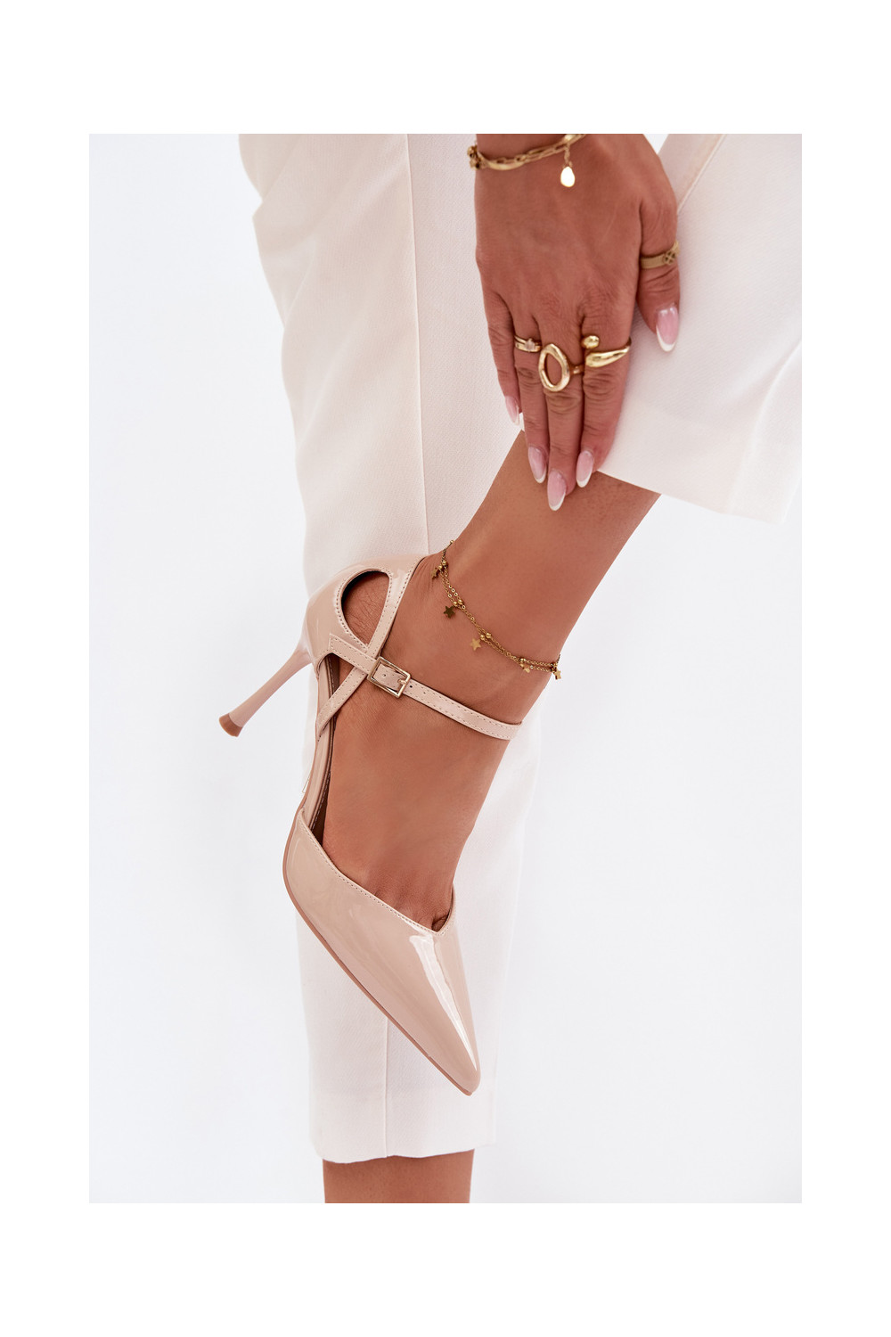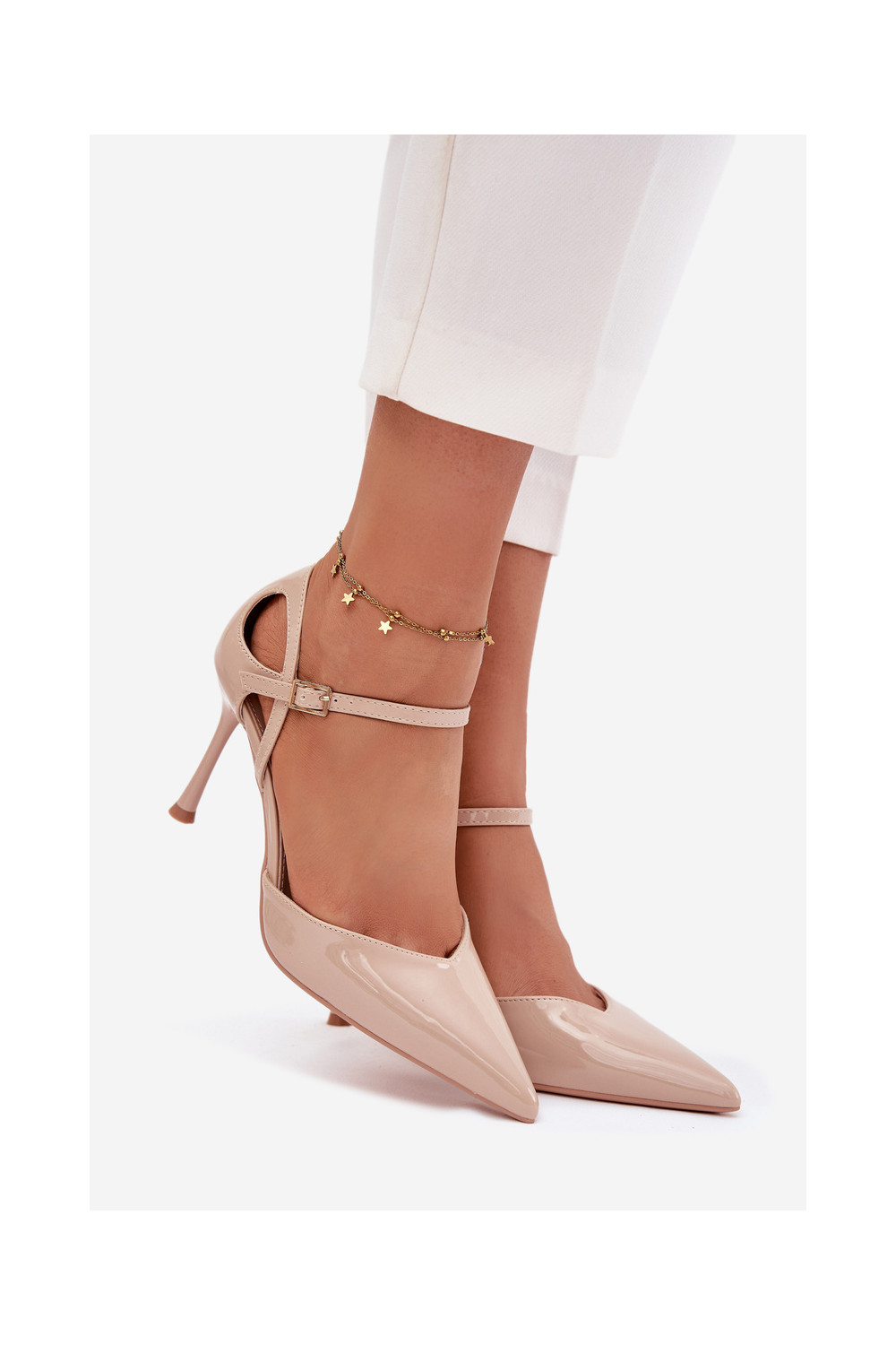su lako efektu aukštakulniai bateliai su dirželiais smėlio spalvos Tarilin